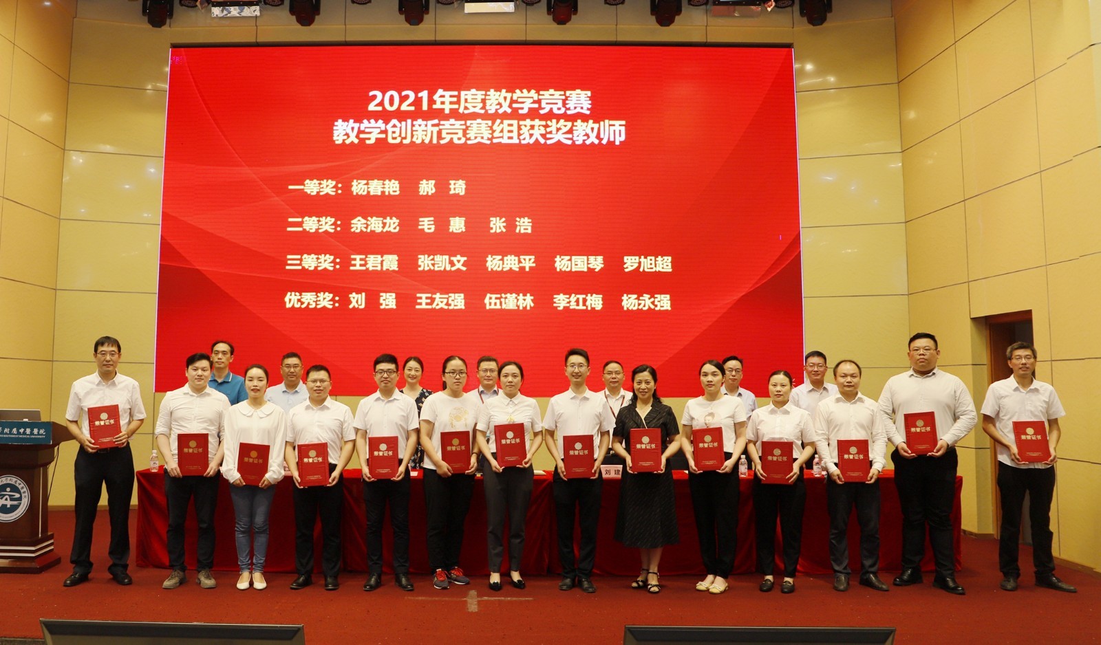 2021年教学创新竞赛获奖教师:杨春艳、郝琦、余海龙、毛惠、张浩、王君霞、张凯文、杨典平、杨国琴、罗旭超、刘强、王友强、伍谨林、李红梅、杨永强