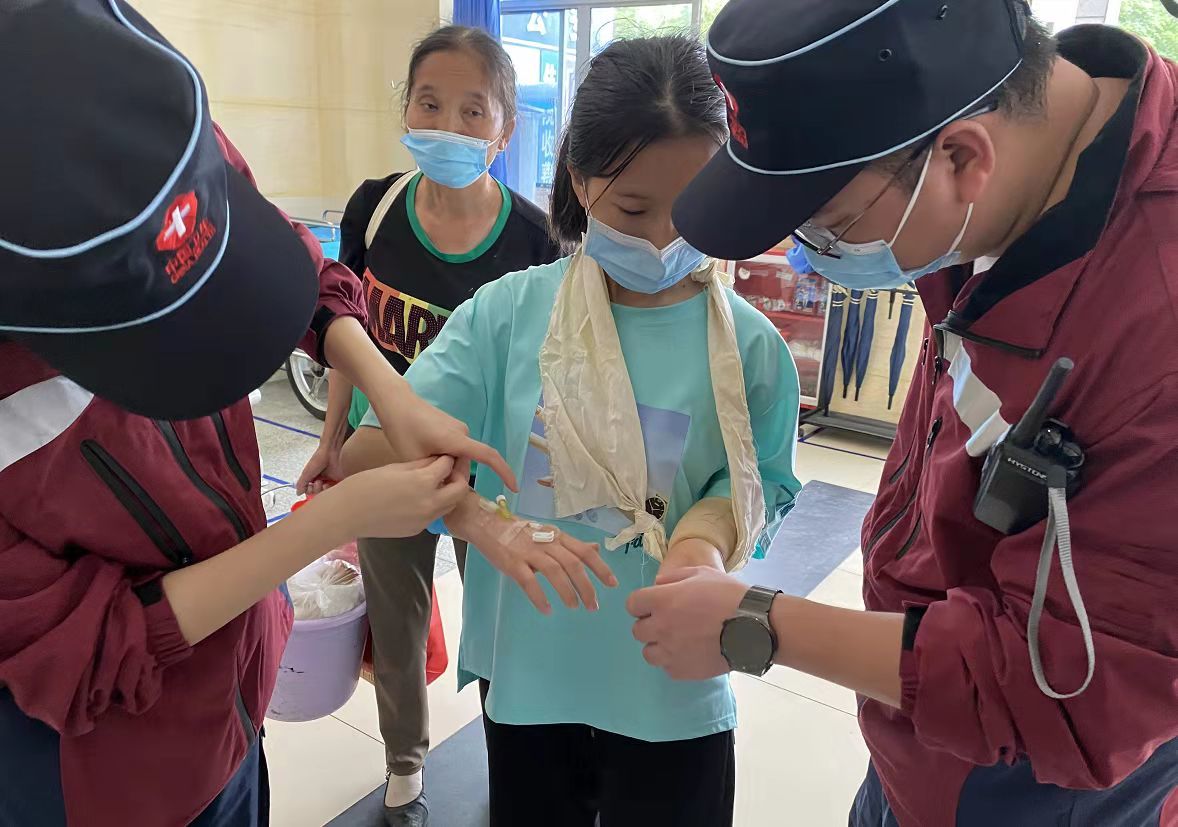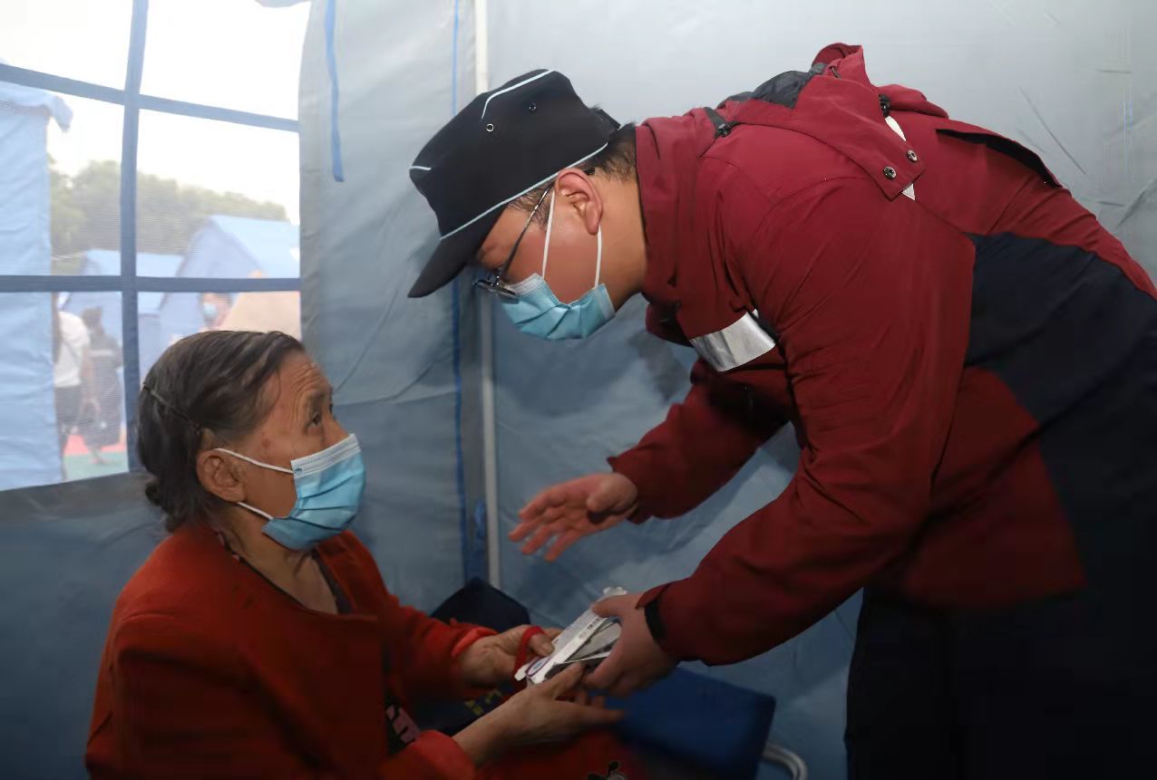 医疗队到达泸县后,迅捷开展救援工作,第一时间深入泸县人民医院病房进行了查房,开展救治工作,并前往龙脑桥中心小学校临时安置点为灾区群众进行心理疏导、指导用药。
