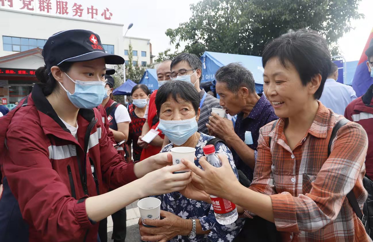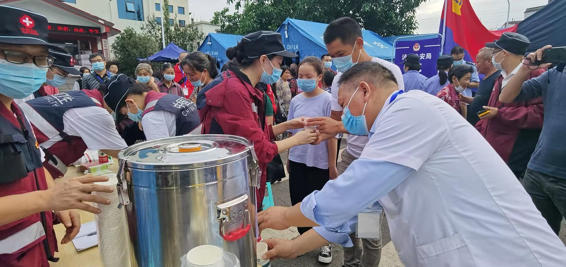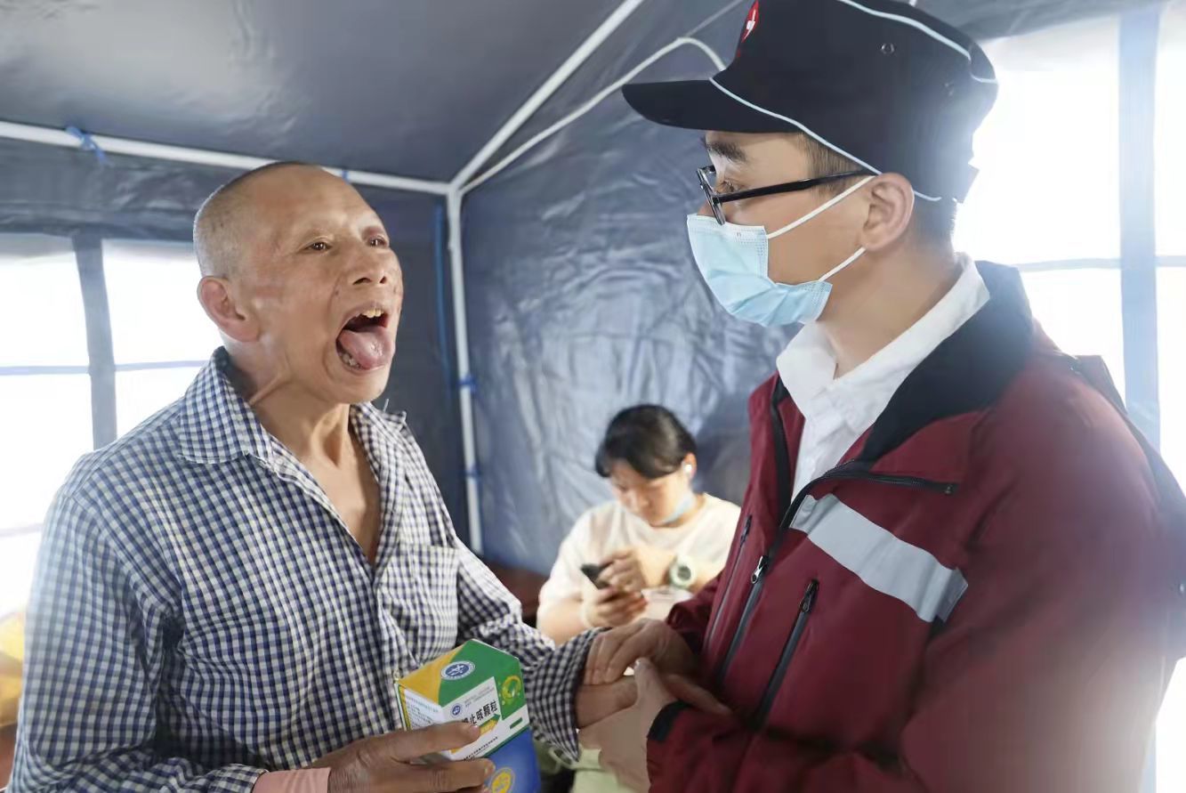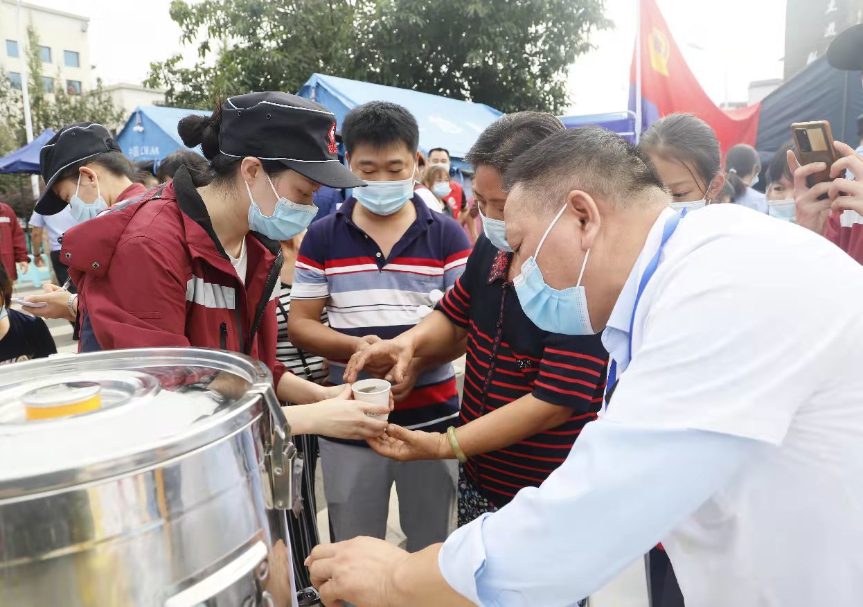 到达泸县地震灾区后,我院医疗救援队分组为灾区群众开展了健康检查、心理辅导等。与此同时,为预防震后传染病高发,我院医疗救援队为安置点的群众发放了中药免煎颗粒,熬制了中药大锅汤免费发放给大田社区、小冲子村党群服务中心、龙华村党群服务中心等五个安置点的群众。