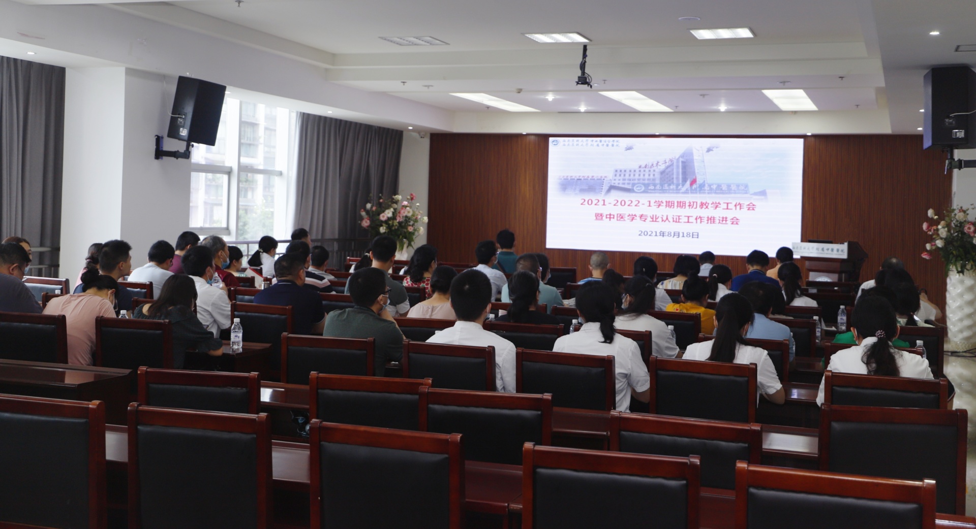 2021年8月18日,我院召开2021-2022-1学期期初教学工作会暨中医学专业认证工作推进会,党委书记李志、院长刘建、副院长徐厚平、中医学专业负责人魏嵋、各教研室主任、教学秘书、全体基础教职工及相关职能部门人员等参加了会议。