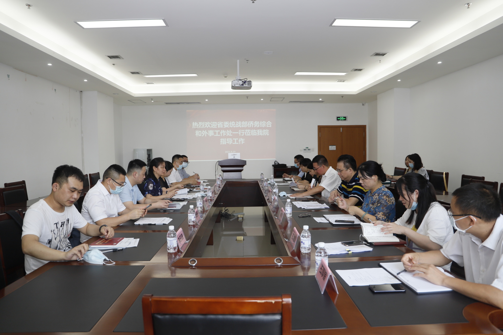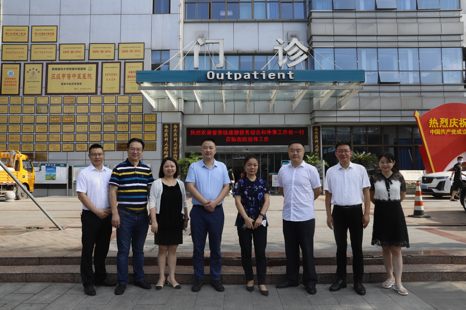 2021年8月19日,四川省委统战部侨务综合和外事工作处副处长冯静一行莅临我院调研海外诊疗站建设工作,四川省中医药管理局对外合作处一级主任科员蒋文娟,泸州市委统战部副部长、市侨办主任、市侨联党组书记、主席赵宇光等领导,我院副院长徐厚平及相关职能部门负责人参加了会议。会议由徐厚平主持。