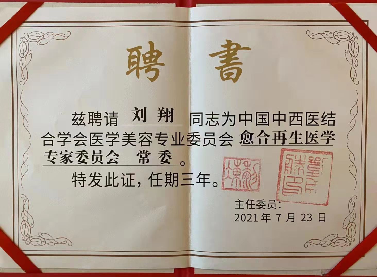 会上,我院医学美容中心副主任刘翔当选为中国中西医结合学会医学美容专业委员会愈合再生医学专家委员会常委。