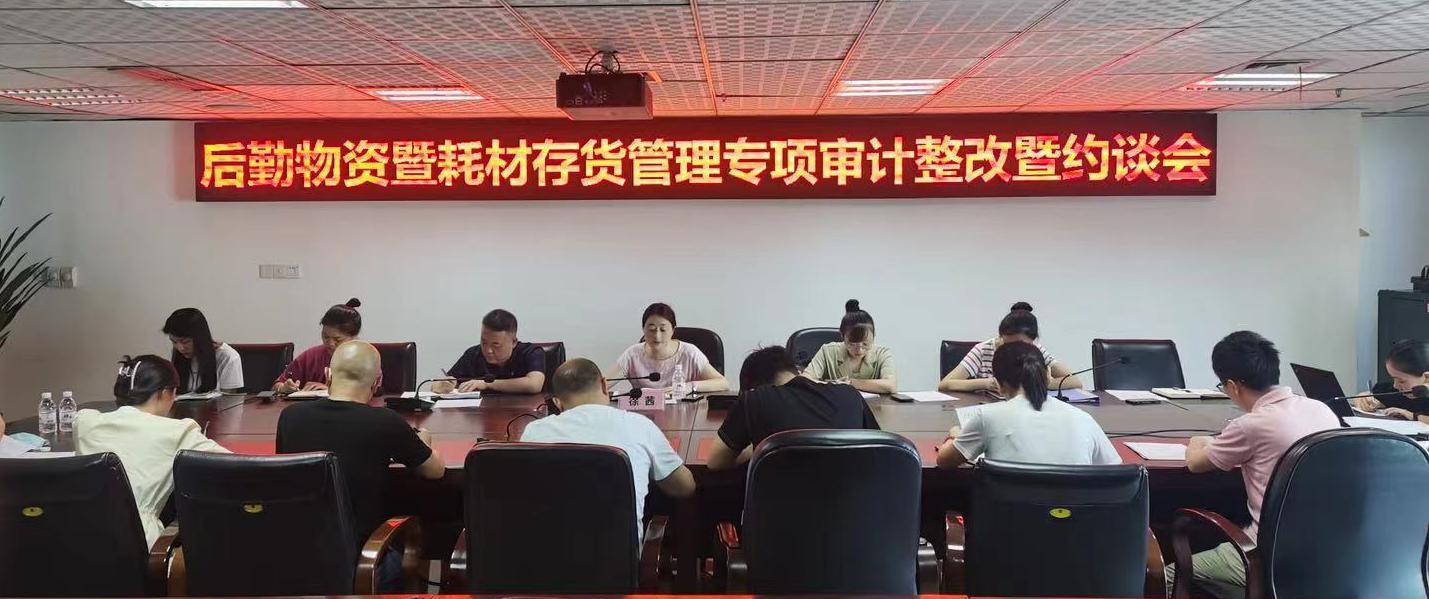 2021年7月23日,我院在歧黄厅召开后勤物资暨耗材存货管理专项审计整改暨约谈会。医院党委副书记·纪委书记徐茜、纪委办·监察室、审计组及相关职能部门人员参加了会议,会议由审计部部长黄浩主持。