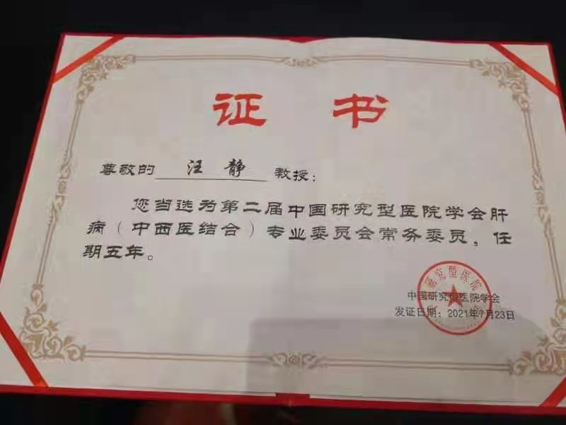 2021年7月23日,第6届中国研究型医院学会肝病(中西医结合)专业委员会换届选举大会在北京召开,我院大内科副主任兼肝胆病科主任汪静教授当选为常务委员,肝胆病科副主任王晓栋副教授当选为委员,并在大会上进行了冷冻消融操作演示及讲解。
