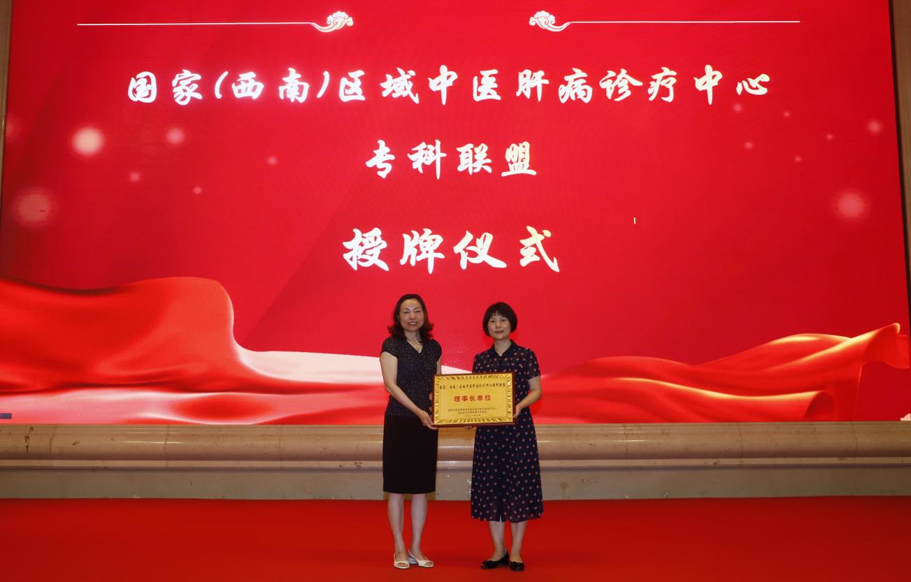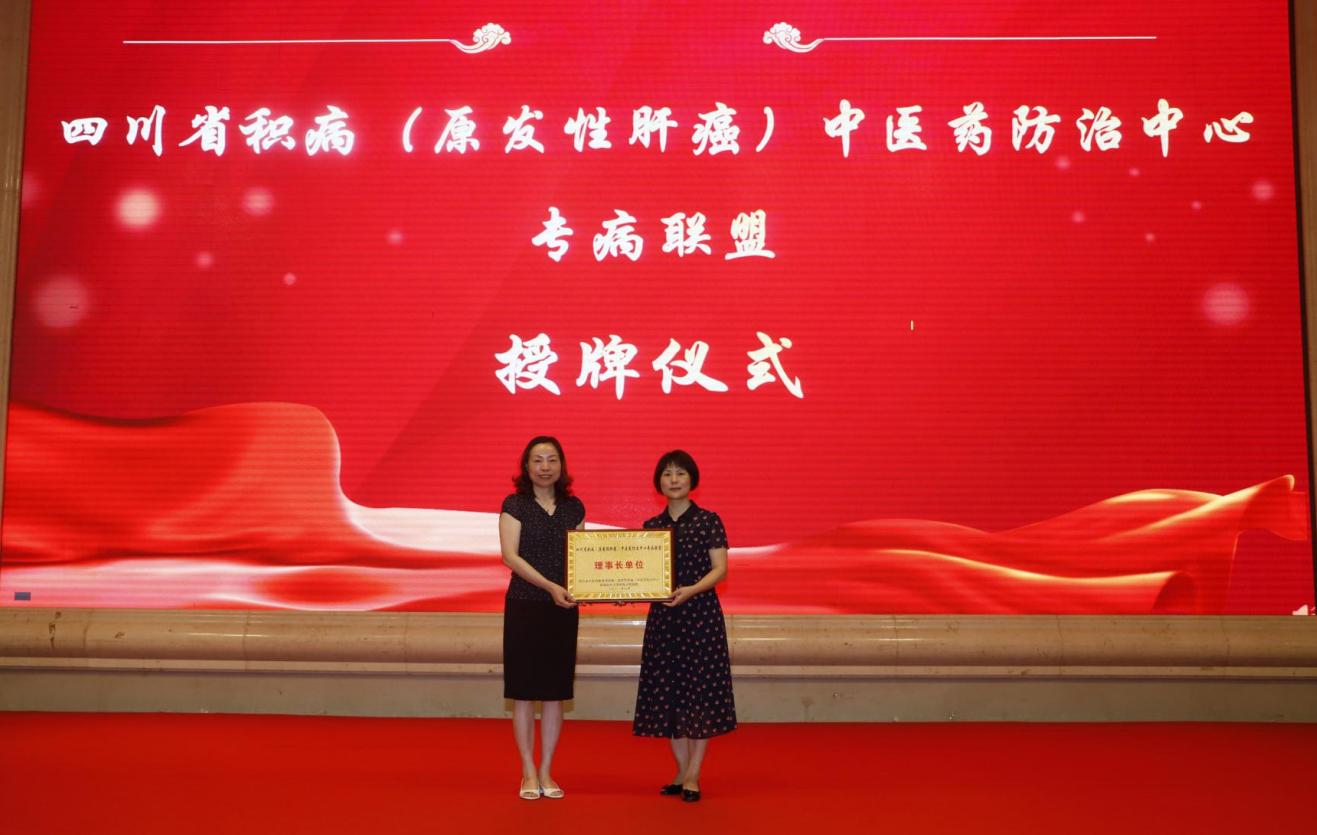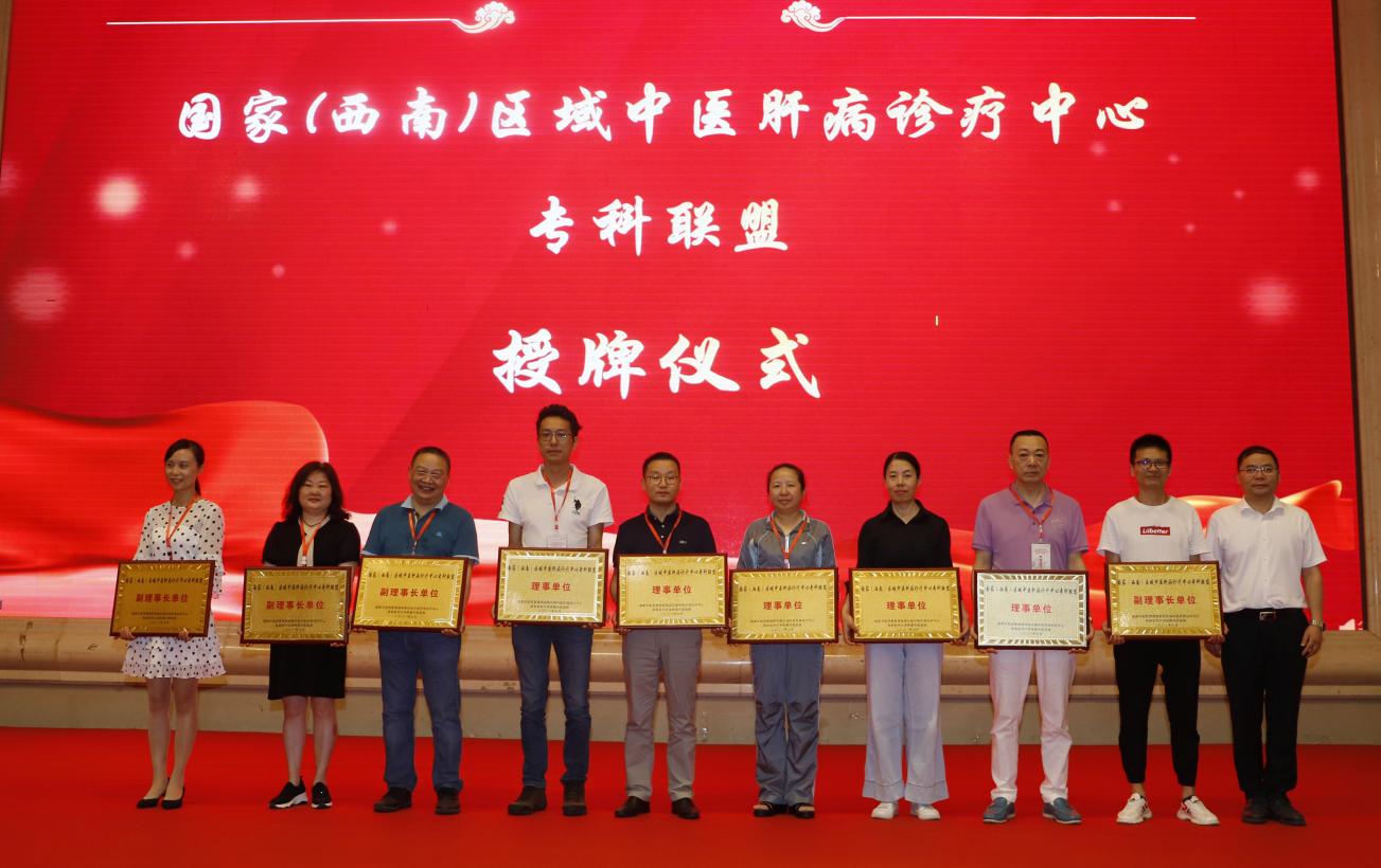 随后举行授牌仪式,尹莉和刘建分别向国家(西南)区域中医肝病诊疗中心专科联盟和四川省积病(原发性肝癌)中医药防治中心专病联盟的理事长单位、副理事长单位及理事单位授牌。
