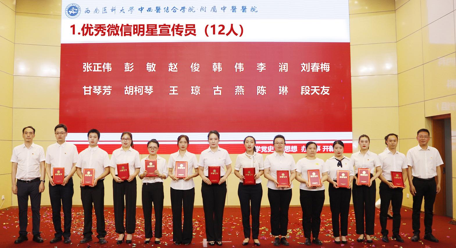 随后,副院长汪国友宣读了《中共西南医科大学附属中医医院委员会关于表扬 2020年度宣传思想工作先进集体和个人的通知》,与会领导为优秀微信明星宣传员、宣传思想工作先进个人、优秀科普专家和宣传思想工作先进集体颁发了荣誉证书和奖牌。
