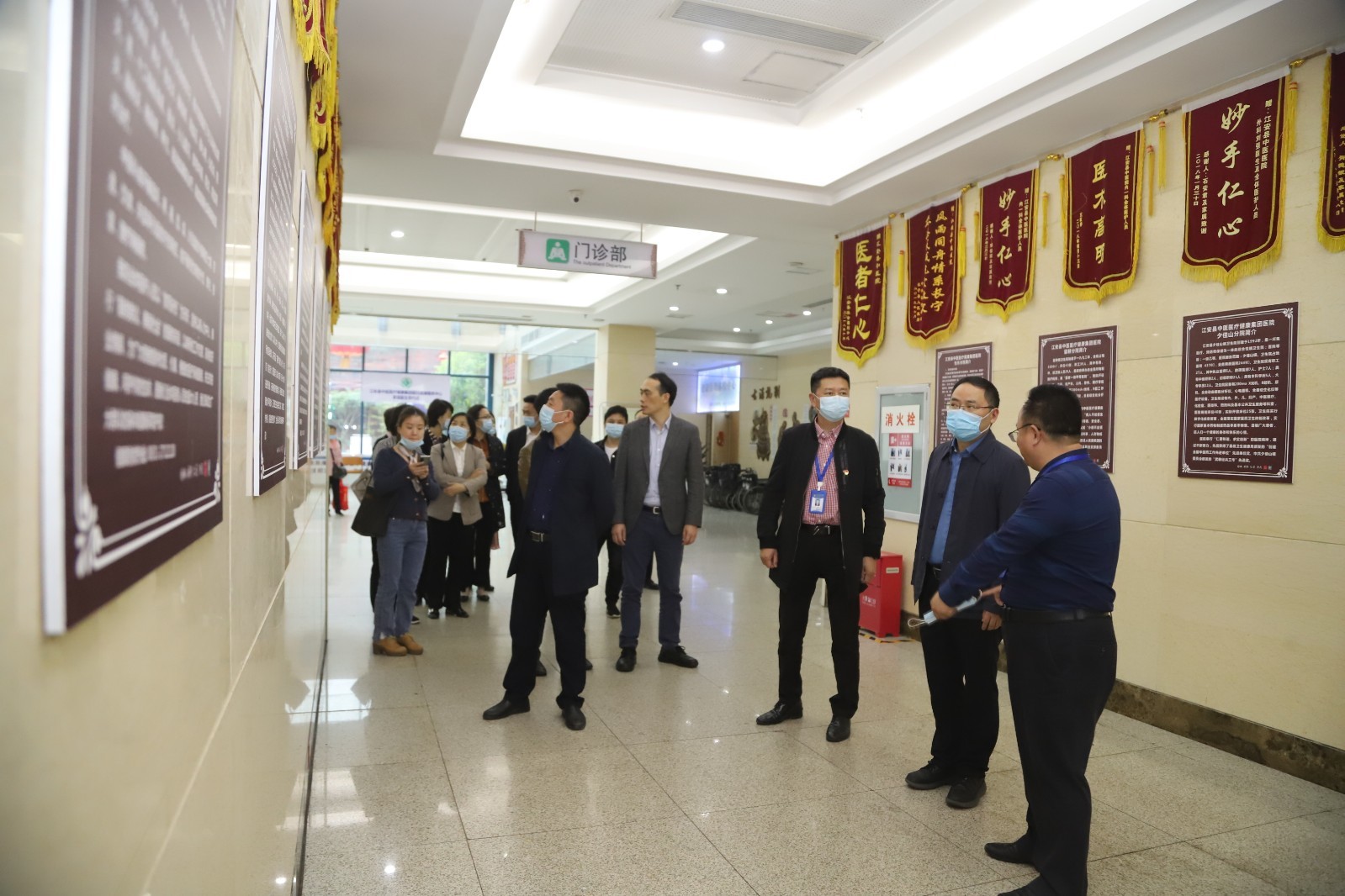 会前,刘建院长一行实地考察了江安县中医医院门诊大厅、院史文化长廊、物资采配中心、儿童康复中心等地。