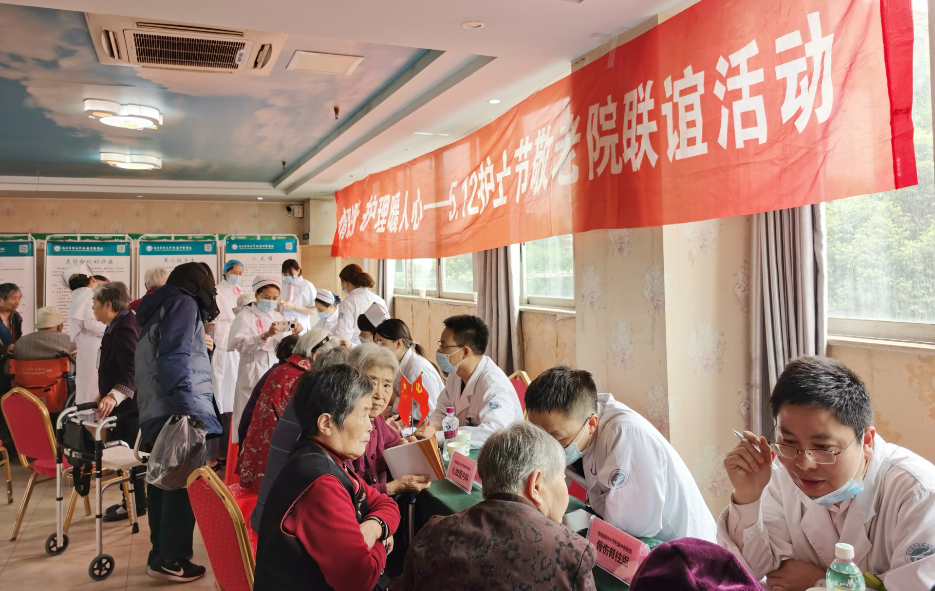 2021年4月23日,我院护理部组织心血管内科、呼吸内科、老年病科、综合内科、泌尿外科、肛肠科、骨伤科(脊柱·骨肿瘤组)等医护人员到泸州市中颐·金色养老院开展了“情系夕阳红·护理暖人心”5·12护士节义诊活动。