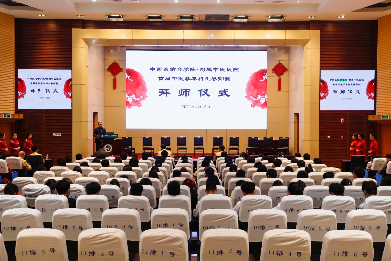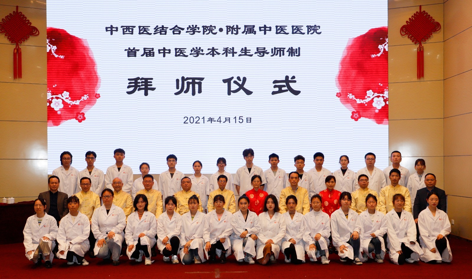 2021年4月15日,我院举行首届中医学本科生导师制拜师仪式。院长刘建、党委副书记赵国强、副院长徐厚平、汪国友,中医学本科生导师代表、2018-2019级中医学本科生代表及2020级中医学全体本科生等参加了仪式。仪式由赵国强主持。