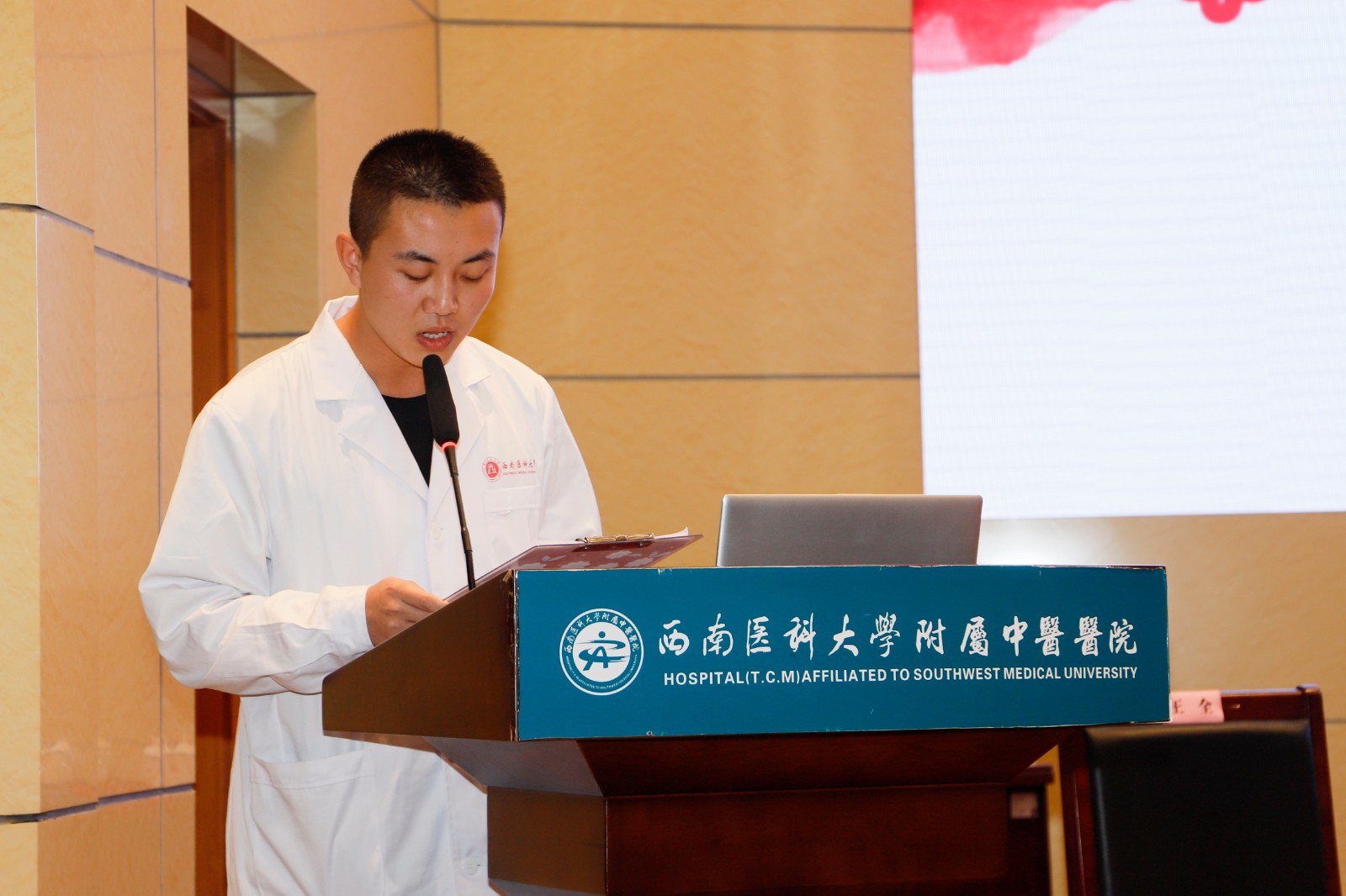 学生代表张志宇发言,他表示将严格要求自己,尊敬老师,认真学习,勤于思考,争取早日成为德才兼备的中医人。