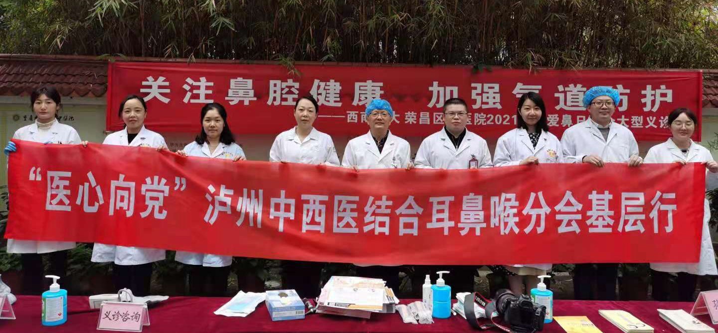 4月10日,我院耳鼻咽喉科专家团队前往荣昌区中医院举行了“爱鼻日”义诊和“医心向党”泸州市中西中西结合耳鼻咽喉分会基层行公益义诊活动,并进行了教学查房。