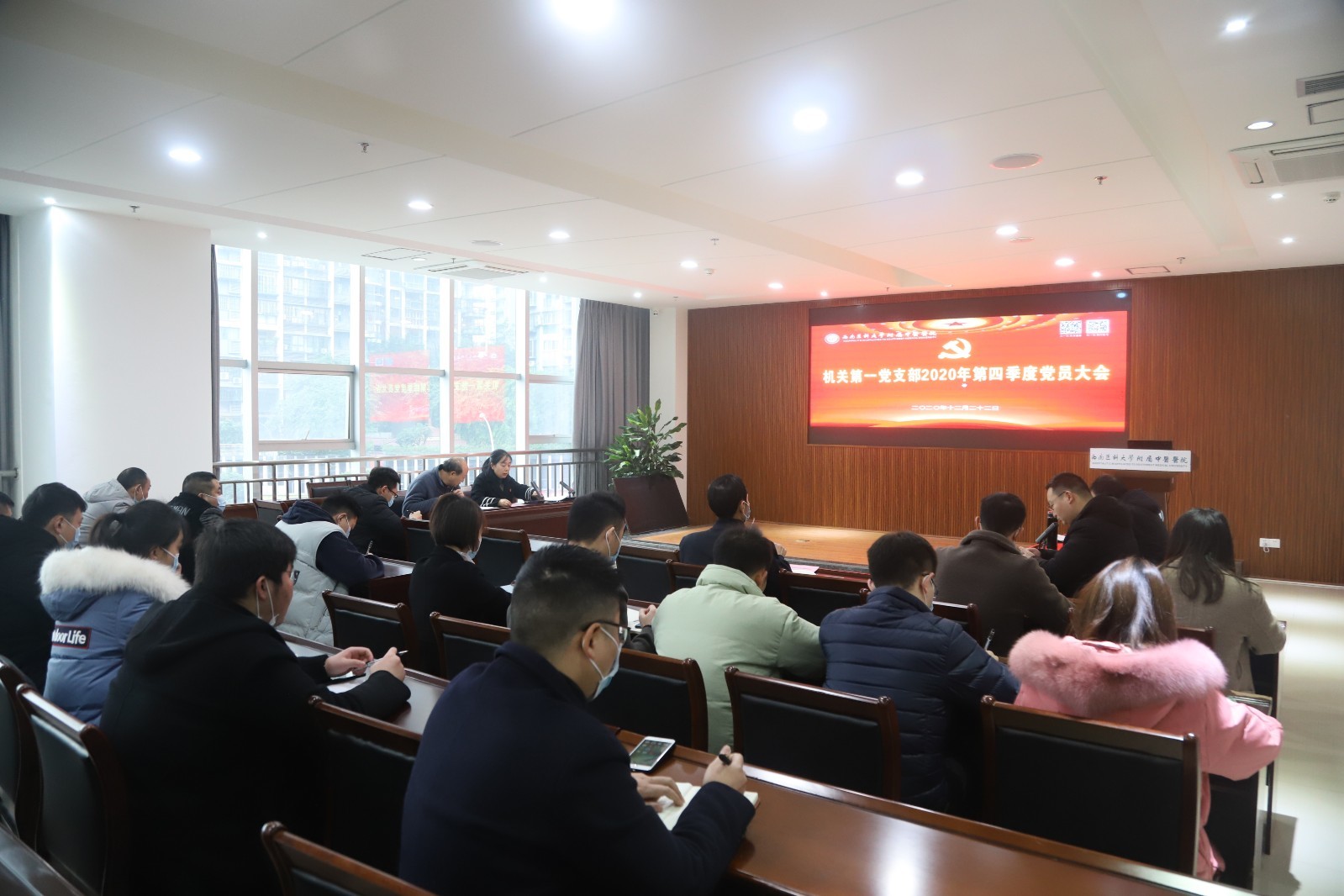 2020年12月22日,我院机关第一党支部召开第四季度党员大会,党委专职组织员李正新、支部党员及入党积极分子参加了会议。会议由支部书记汪建英主持。