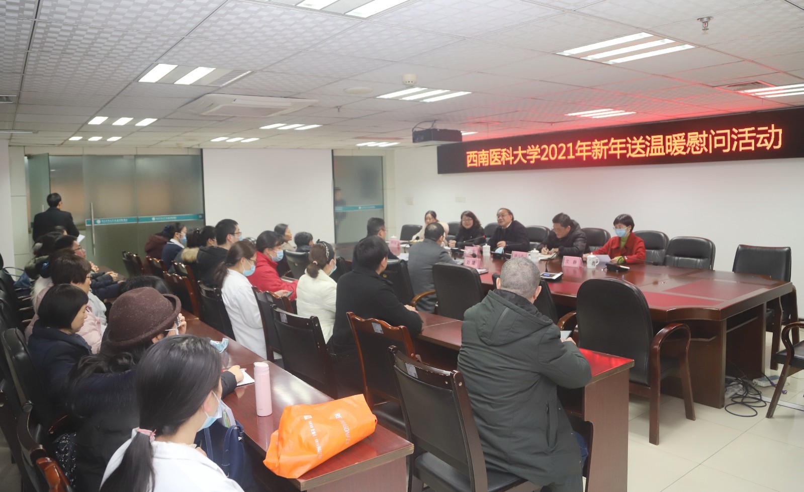 2020年12月29日,西南医科大学党委副书记、纪委书记李尚志一行来院开展2021年新年送温暖慰问活动,医院党委书记李志、院长刘建、“抗疫”先进代表、市劳动模范、困难党员、高层次人才等共计24人参加了本次会议。