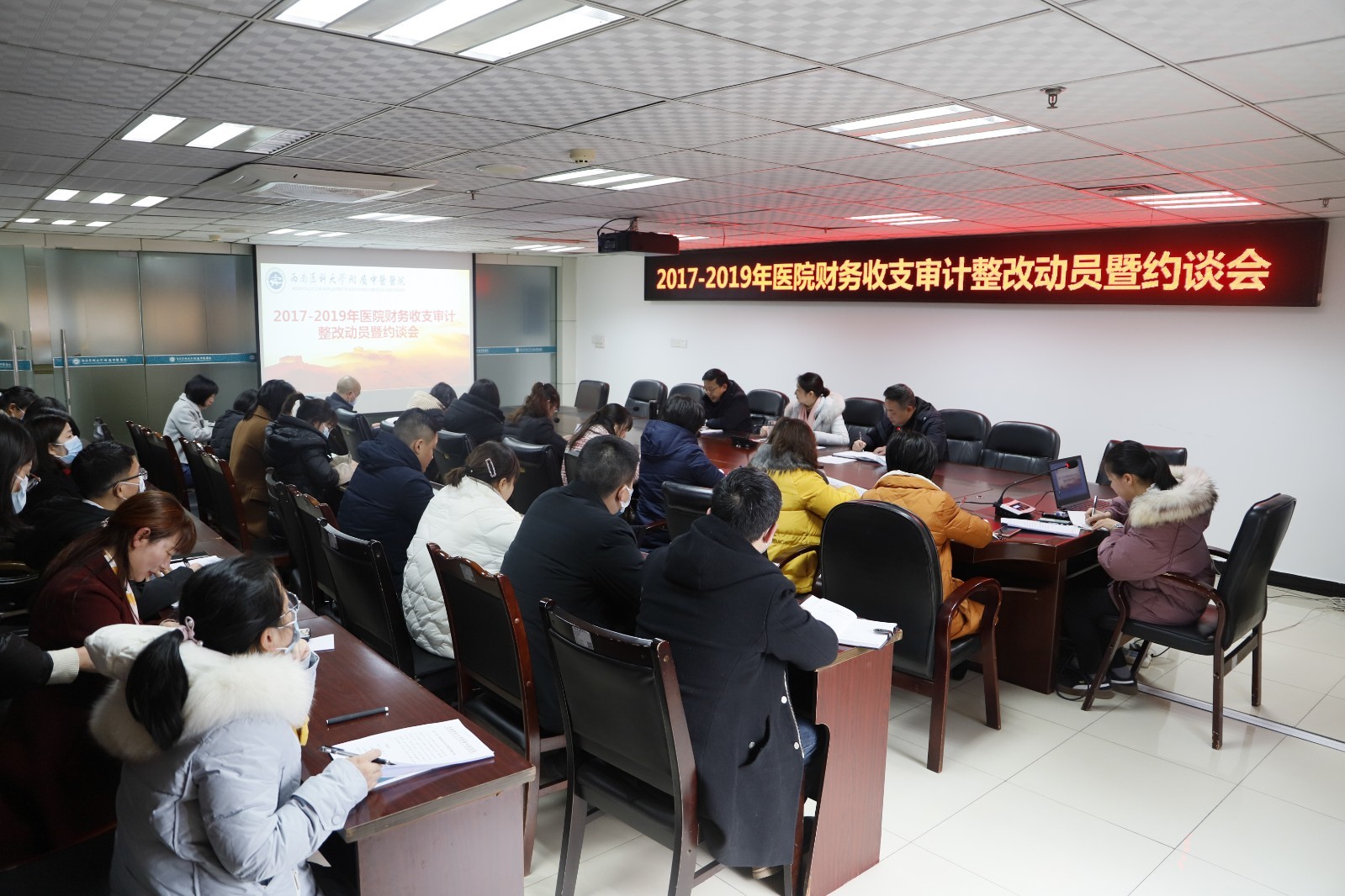 2020年12月23日,我院在岐黄厅召开2017-2019年财务收支审计整改动员暨约谈会。医院党委副书记·纪委书记徐茜、纪委办·监察室、医院审计部及相关职能部门负责人参加了会议,会议由审计部长黄浩主持。