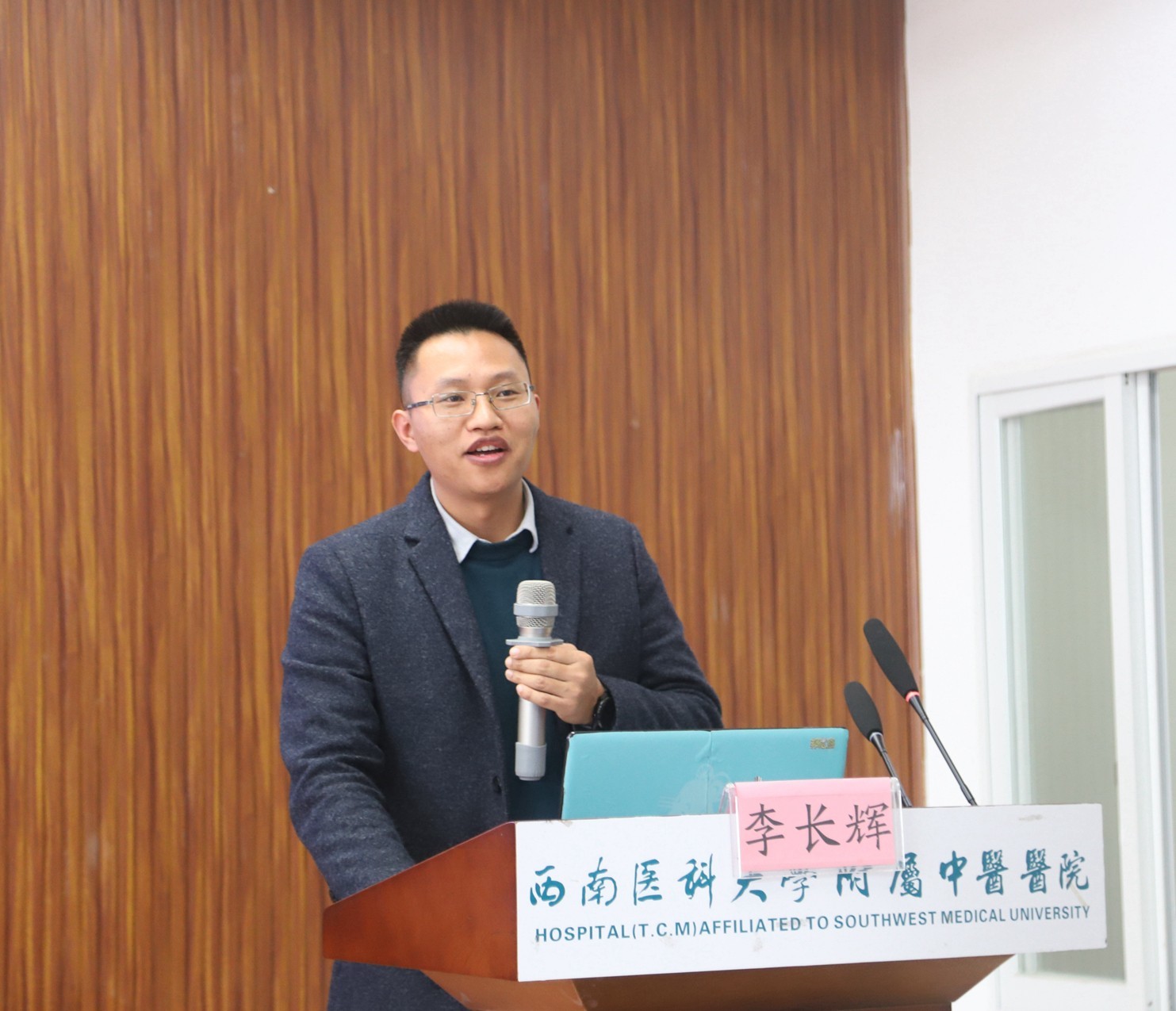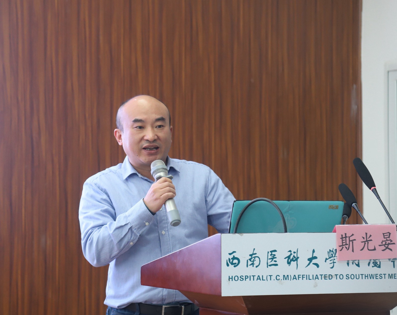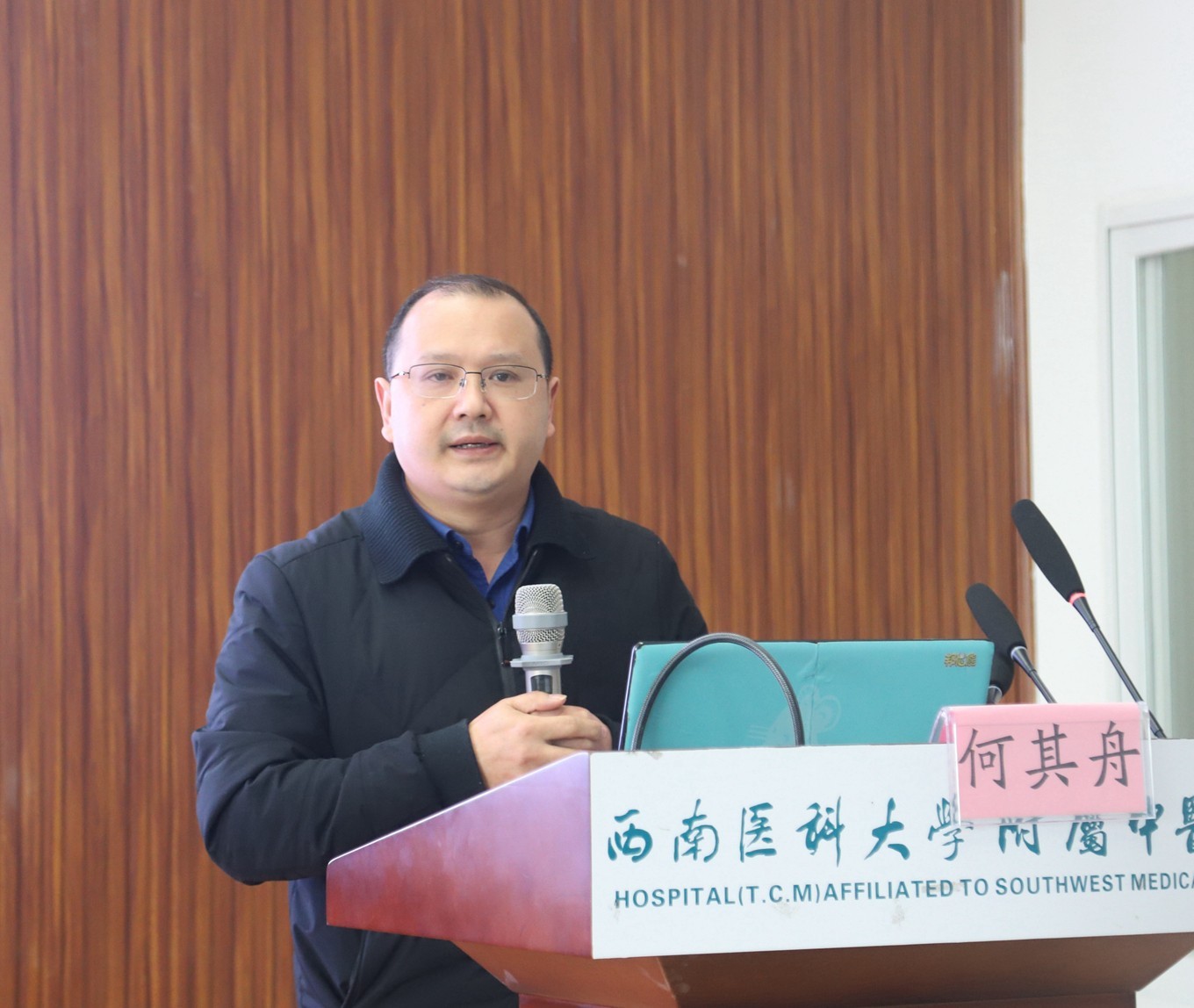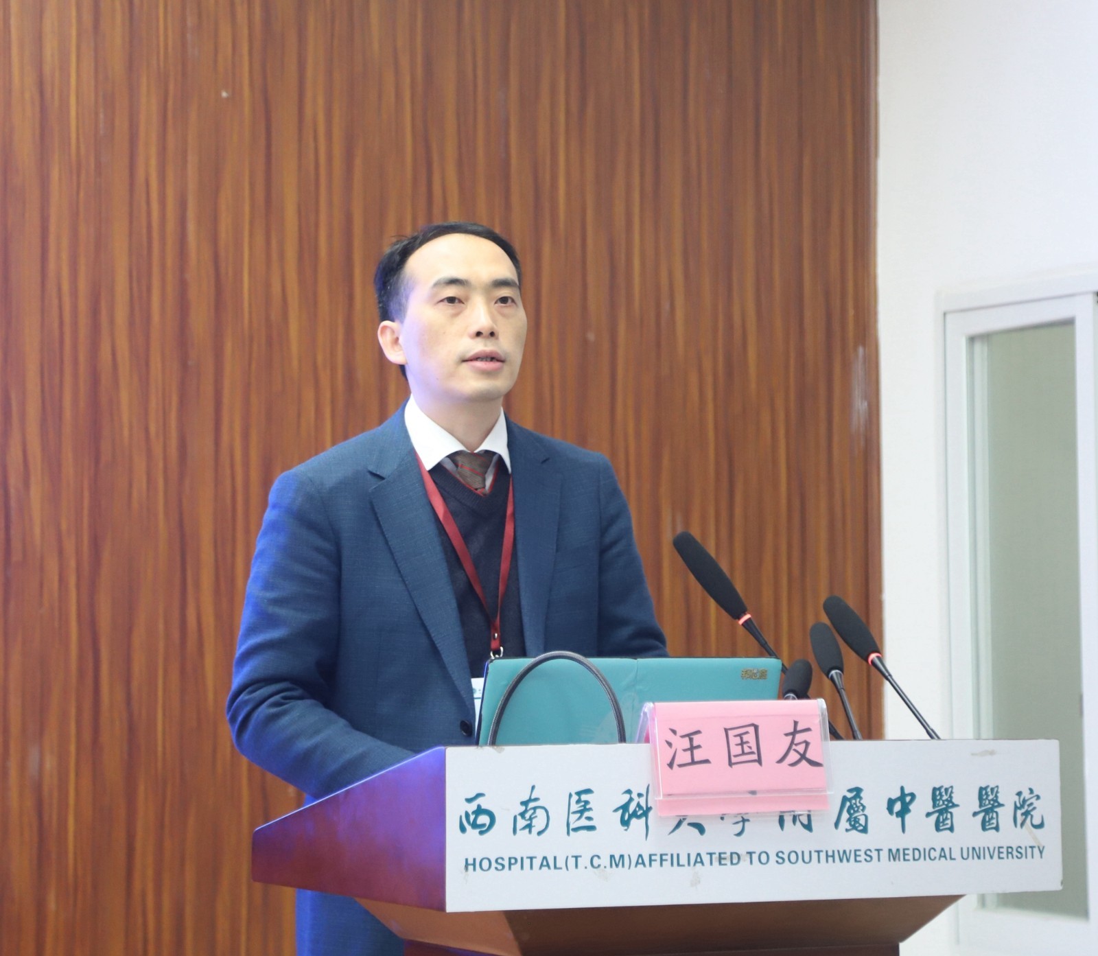 汪国友致辞,他介绍了我院的基本情况和放射影像科(磁共振组)相关情况后,希望与会人员以本次会议为契机,加强学习,增进交流,切实提高影像诊疗技术能力,为川南地区广大群众的健康保驾护航。