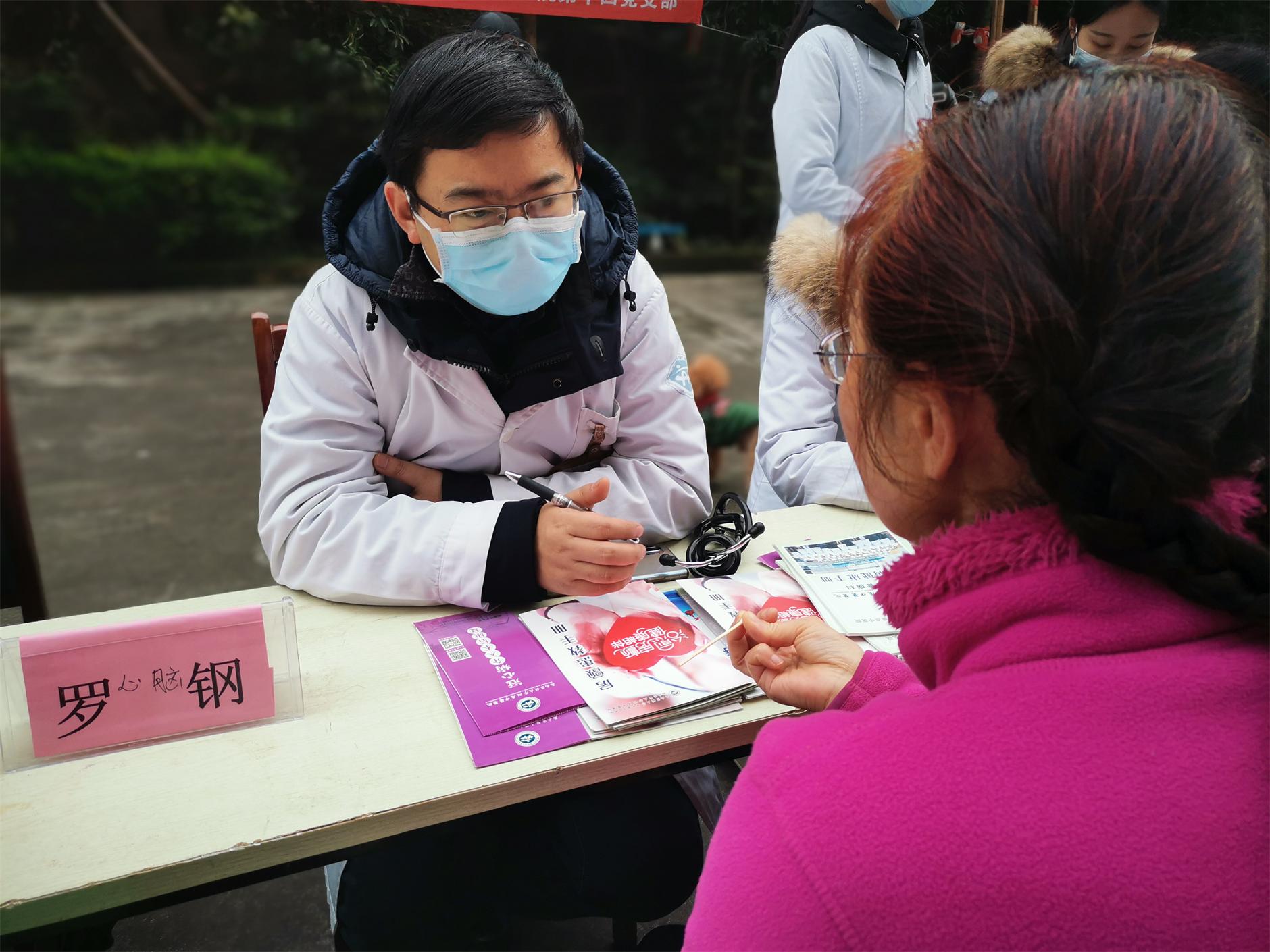 与会人员举行了义诊活动,为前来问询的群众开展检查和诊疗工作,发放健康教育手册。