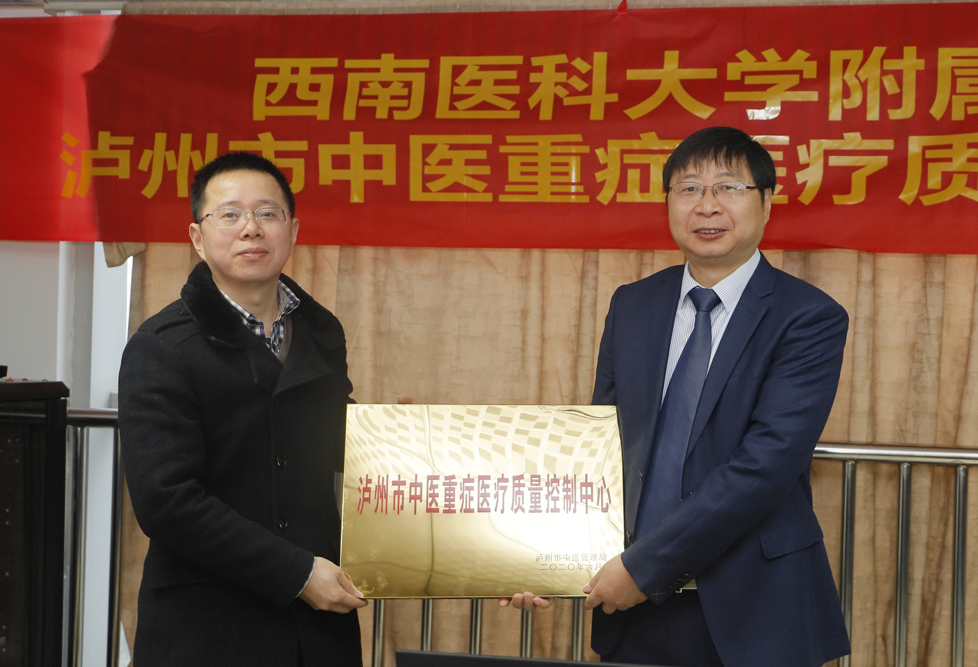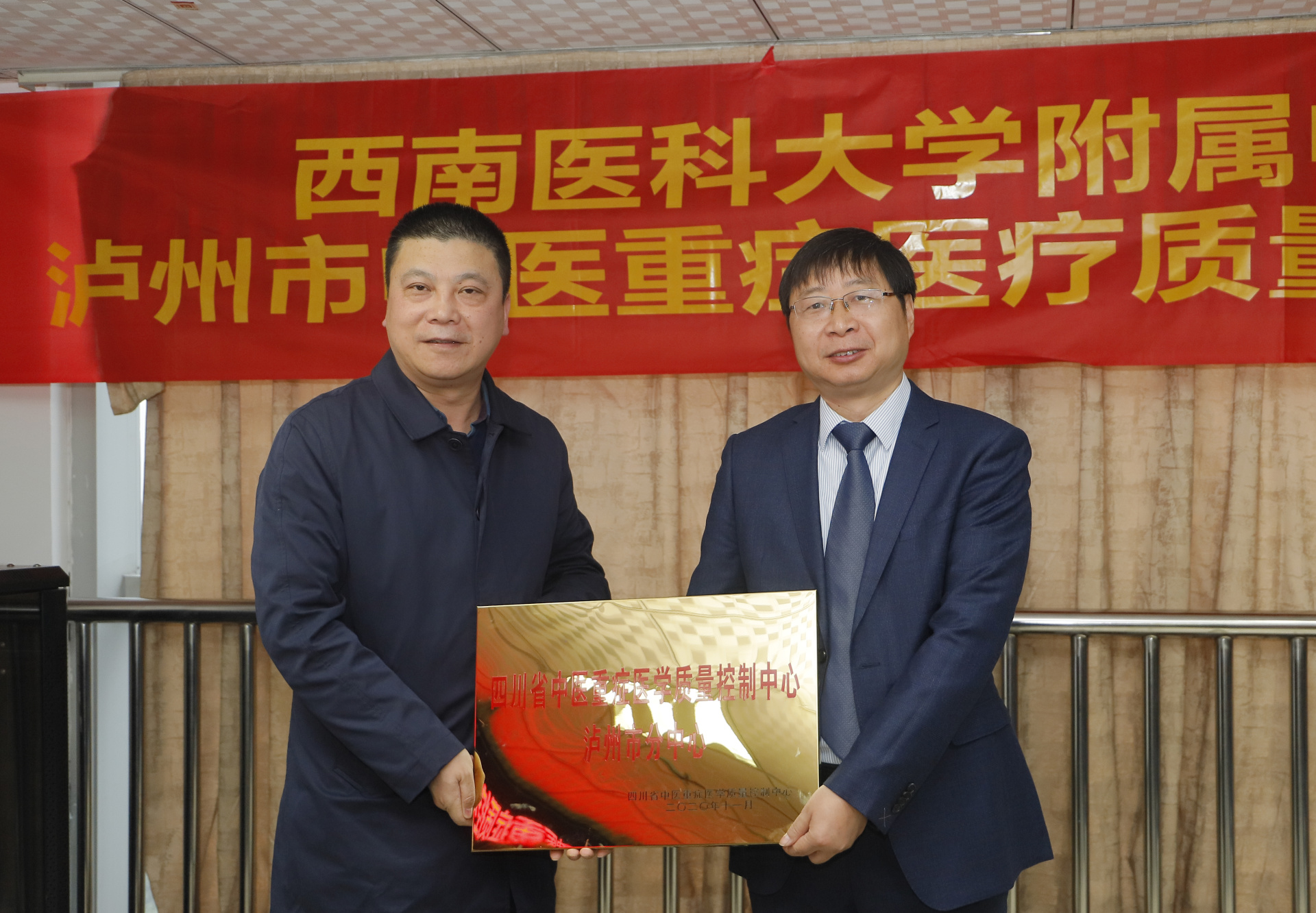 随后,高培阳、赵秋分别向我院授了“四川省中医重症医学质量控制中心泸州市分中心”“泸州市中医重症质量控制中心”牌匾。