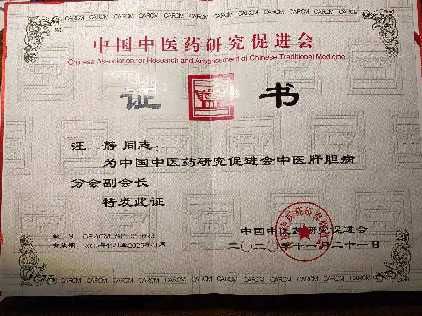 2020年11月20-22日,第一届中医药研究促进会肝胆病分会成立大会在重庆召开。我院大内科副主任兼肝胆病科主任汪静教授应邀作了《川派中医-孙同郊教授防治慢性肝病学术思想传承及创新》专题讲座,并当选为副会长,肝胆病科王晓栋、朱晓宁、刘菊容、李波、王恩成、彭昭宣、郑丁、彭孟云当选为委员。