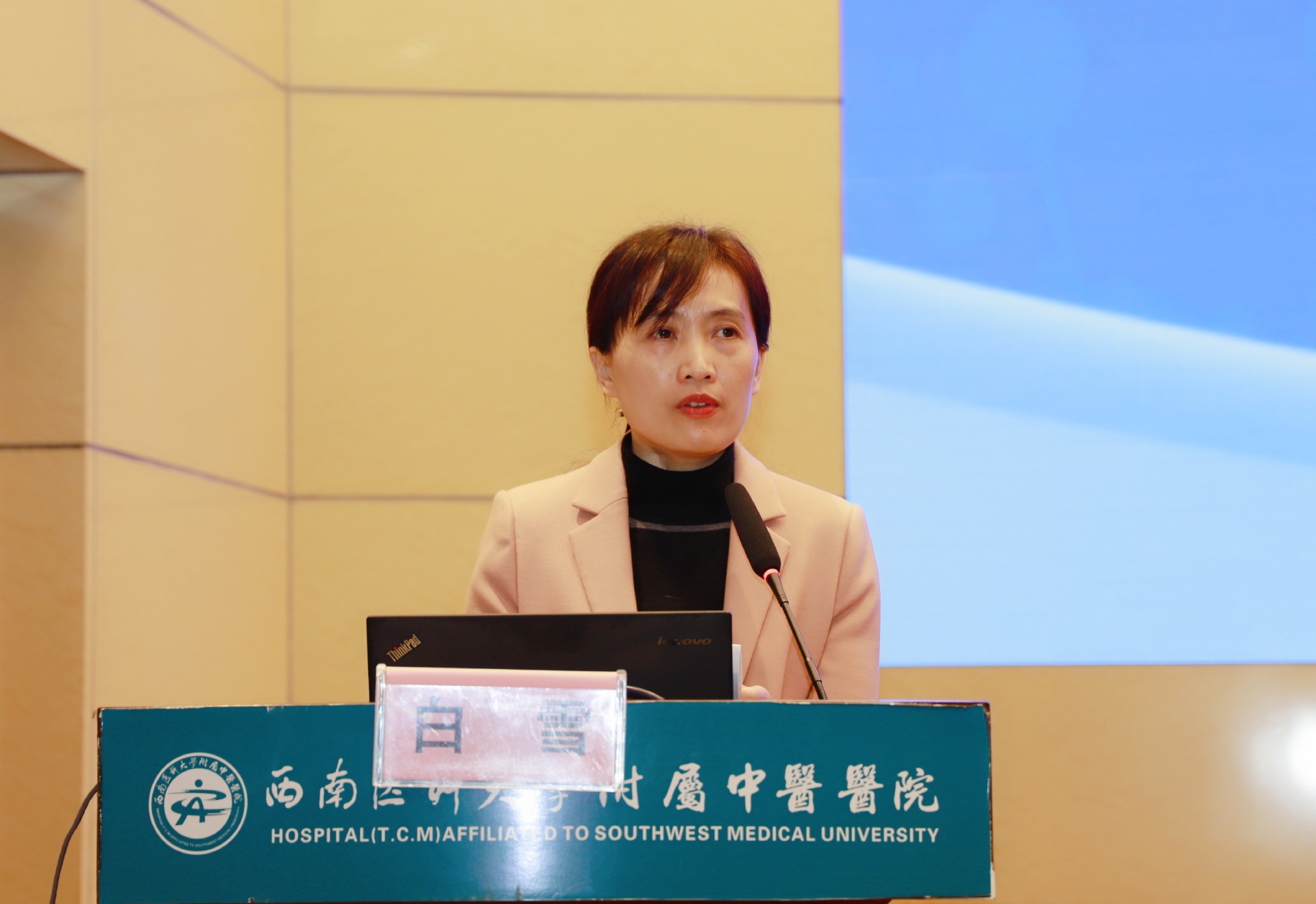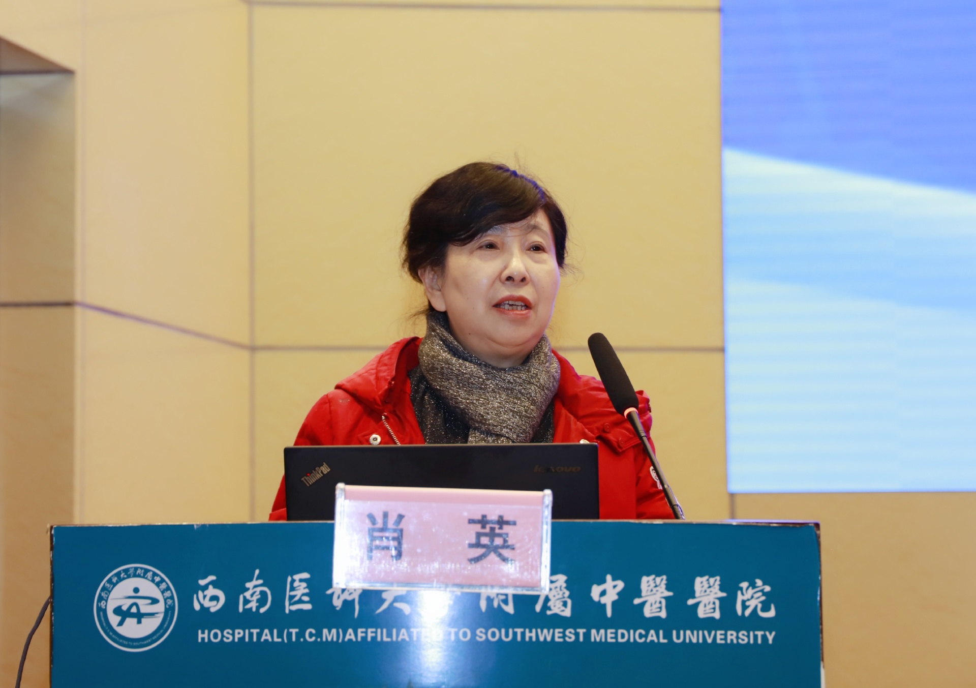 肖英讲话,她介绍了四川省中医药学会基本情况,希望与会专家倾囊相授,参会人员积极交流,进一步推动中医药在心脑血管病诊疗领域的运用。