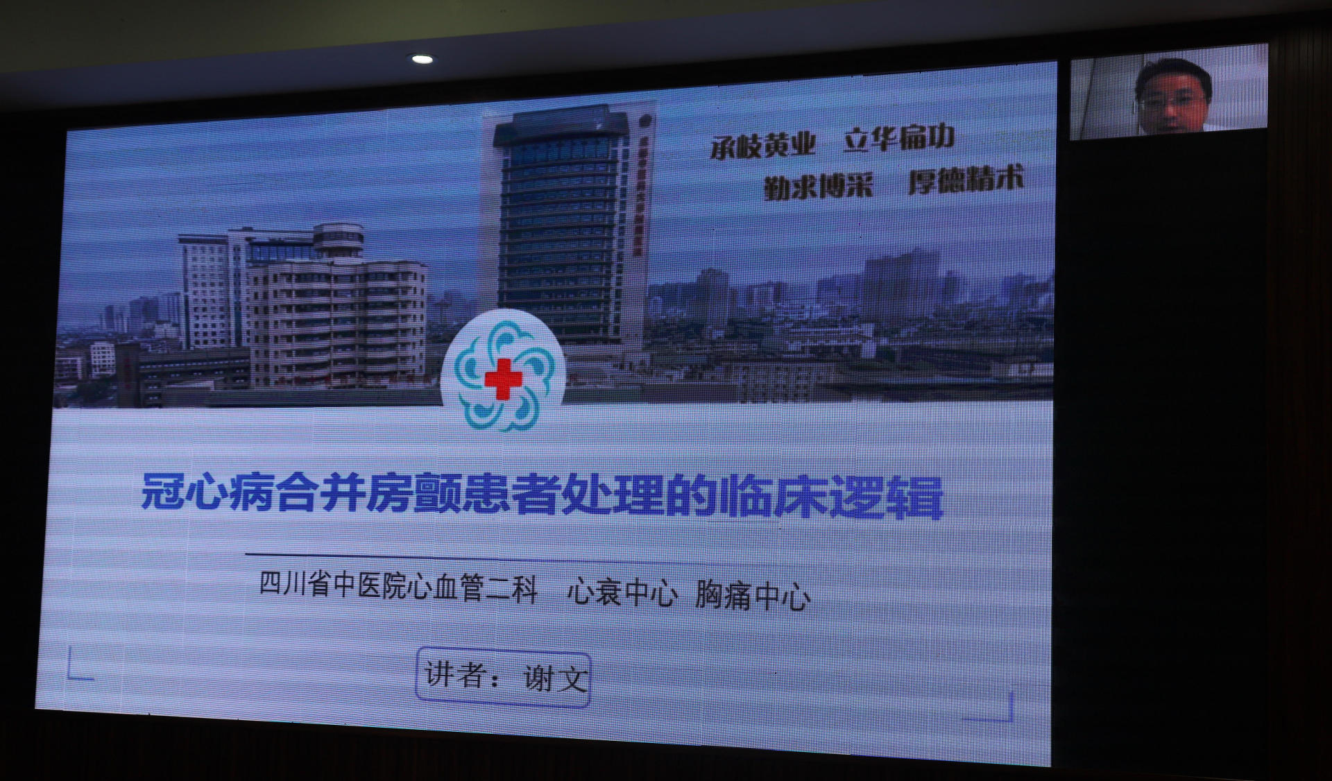 西安国际医学中心医院李伟杰教授、成都大学附属医院何川副教授、成都中医药大学附属医院谢文教授、西南医科大学附属医院黄维义教授,我院斯光晏副教授、江云东教授、潘洪教授、罗钢副教授先后作了《左主干PCI治疗现状与争议》《房颤的结构化评估》《冠心病并房颤患者处理的临床技巧》《急性心肌梗死并发心律失常的识别与治疗》《胸主动脉夹层的腔内治疗》《冠心病诊疗进展》《中国心力衰竭诊断和治疗指南解读》《2020年ESC心房颤动指南解读及中医药治疗进展》专题讲座。