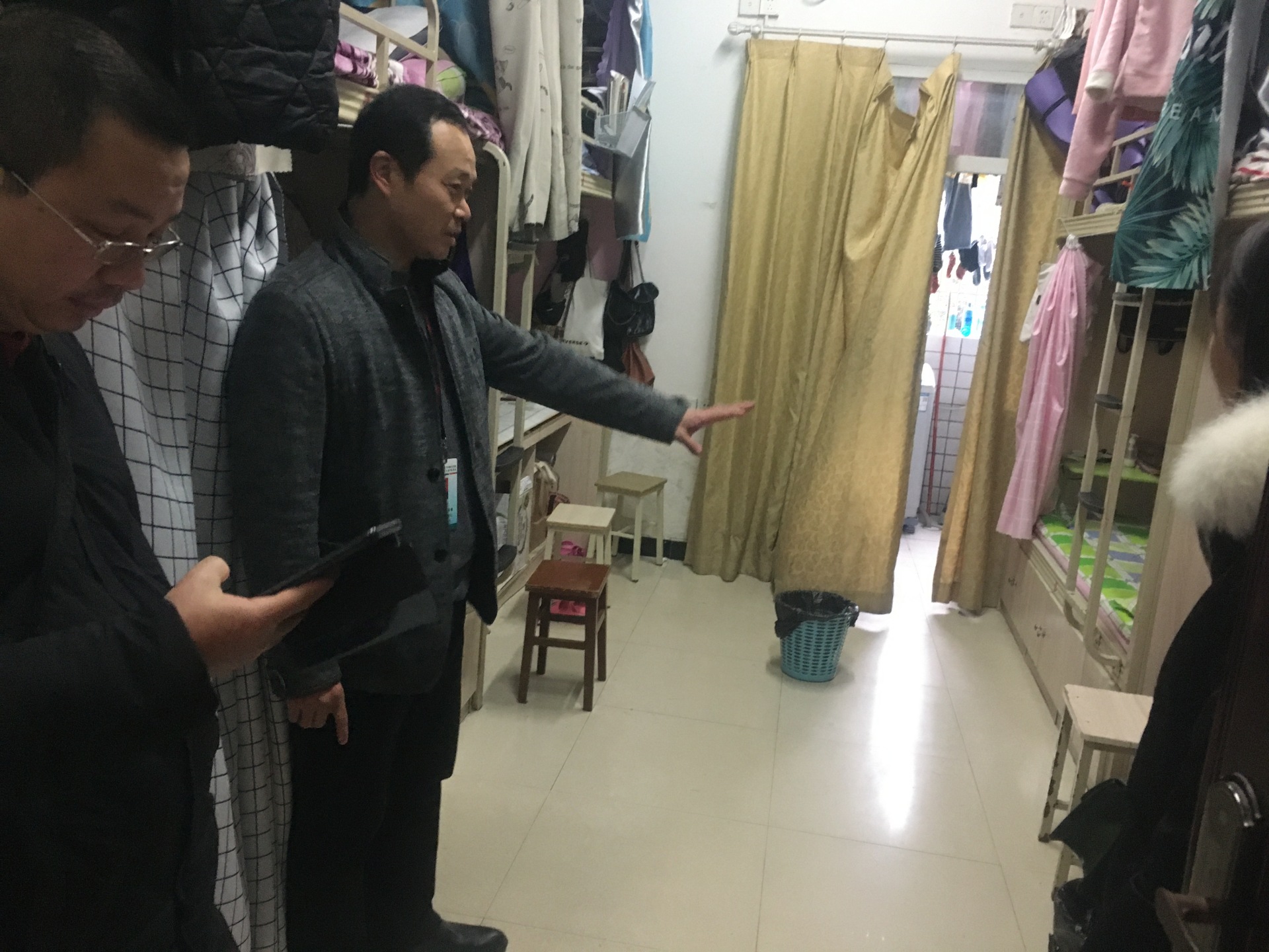 检查组一行逐层检查了中西医结合学院、体育学院、公共卫生等学院学生的寝室内务、违规使用电器等安全问题,了解了学生的学习、生活、思想动态,同时对垃圾分类等相关知识进行了抽问。