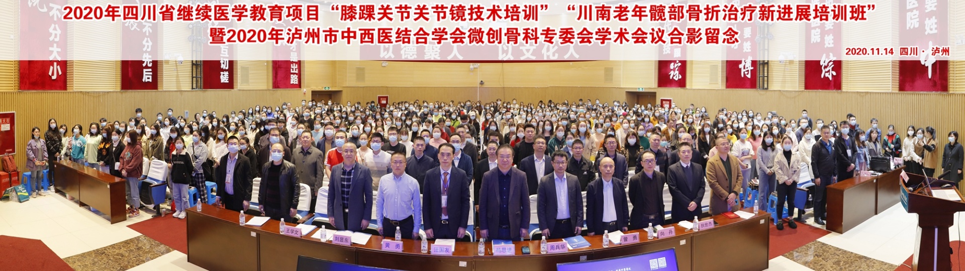 2020年11月11-14日,我院召开了2020年四川省继续医学教育项目“膝踝关节关节镜技术培训”及“川南老年髋部骨折治疗新进展培训班”、2020年泸州市中西医结合学会微创骨科专委会学术会议暨西南医科大学附属中医医院足踝关节实用操作技术培训班。我院副院长、泸州市中西医结合学会微创骨科专委会主任委员汪国友等领导,相关授课专家及全省各医疗机构从事骨伤专业相关医护人员等300余人参加了会议。开幕式由我院大骨科主任兼骨伤科(关节·足踝组)主任扶世杰主持。