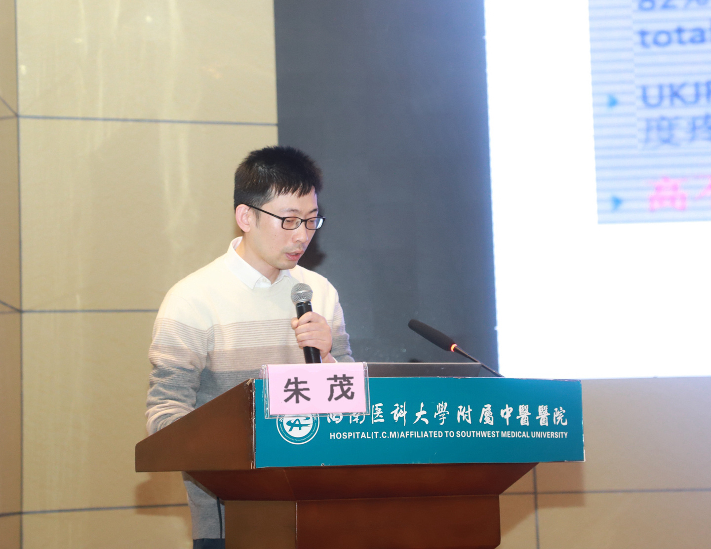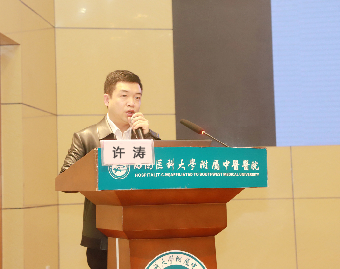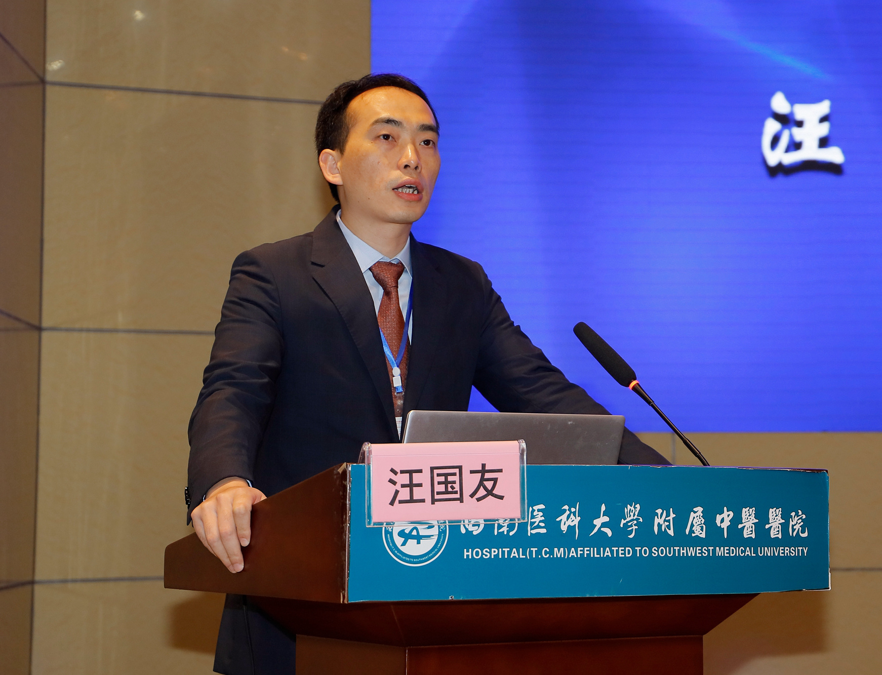 汪国友致辞,他介绍了我院的基本情况和骨伤科(关节·足踝组)相关情况后,希望与会人员以本次会议为契机,加强学习,增进交流,进一步提升骨科疾病诊治水平,为保障川渝滇黔结合部区域人民群众的健康做出积极贡献。
