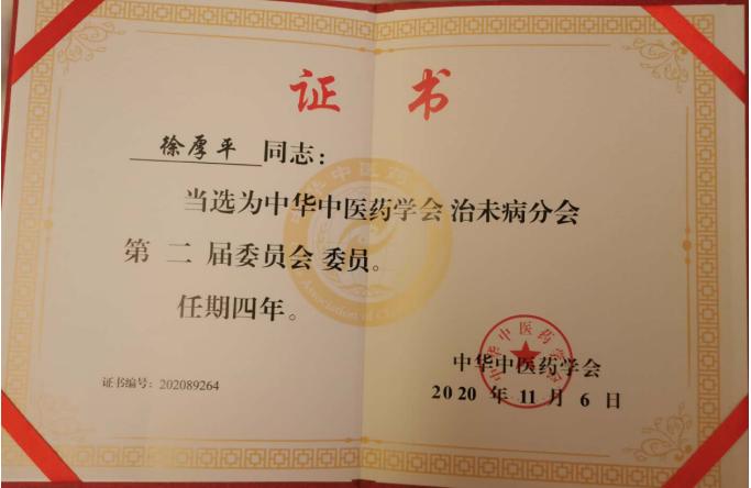 2020年11月6-8日,中华中医药学会治未病分会学术年会暨换届选举会议在长沙举行。我院院长助理、治未病中心主任徐厚平教授当选为委员。