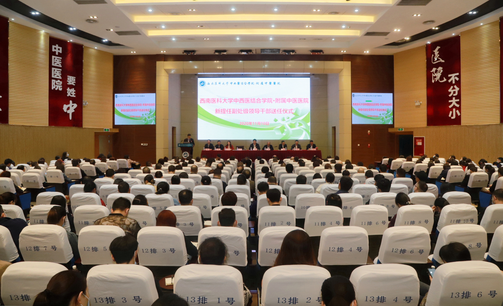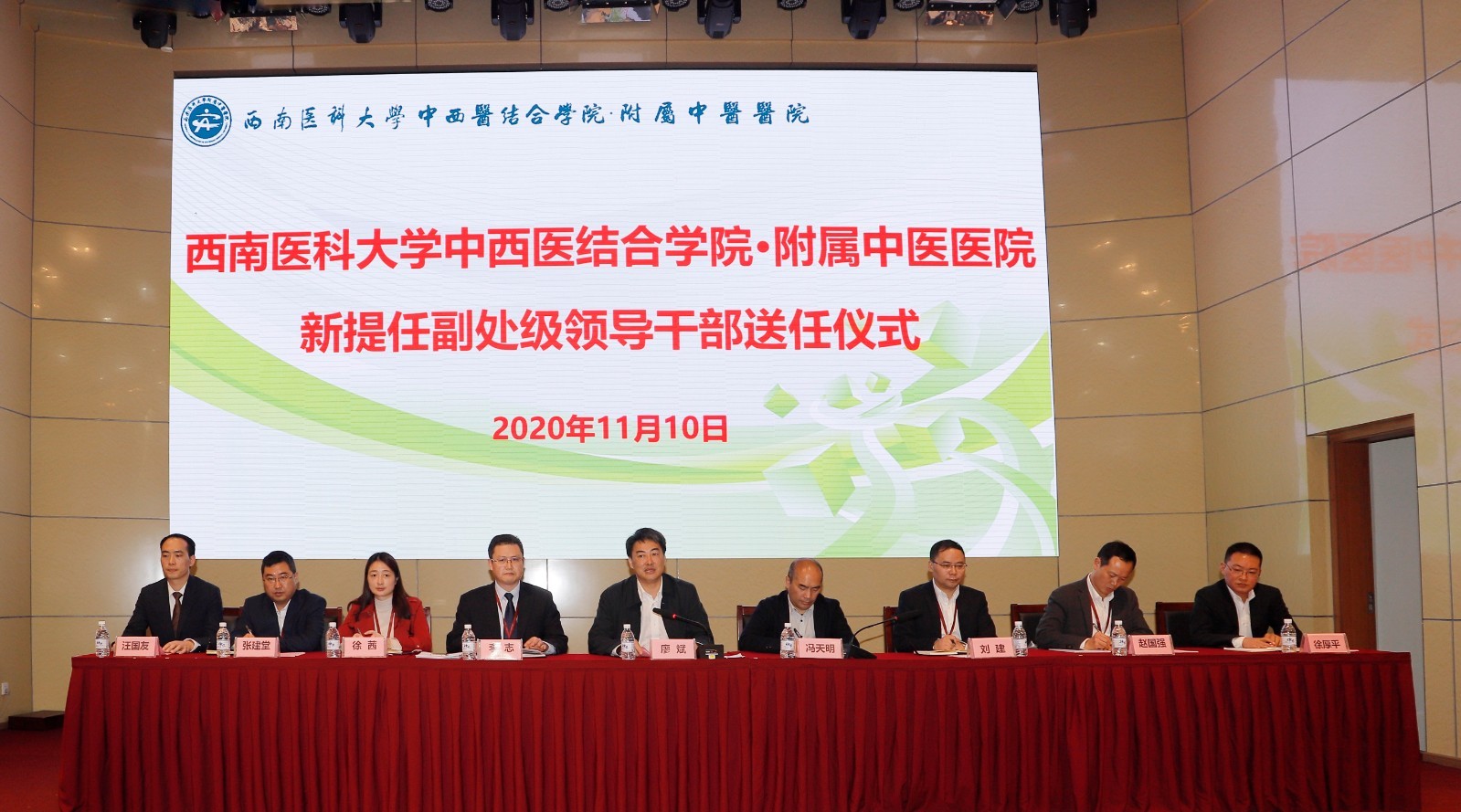 2020年11月10日,我院举行新提任副处级领导干部送任仪式,学校党委书记廖斌,党委常委·组织部部长冯天明,我院党委书记李志、院长刘建等领导,职能部门负责人、党支部书记、科主任、护士长等院周会范围人员参加了仪式。仪式由廖斌主持。