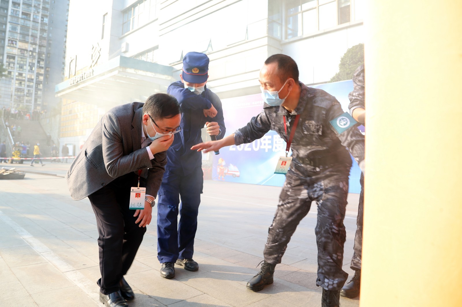 2020年11月12日,我院举行2020年消防知识培训暨疏散灭火应急演练活动,泸州市消防救援支队防火处参谋赵宁江,医院院长刘建,党委副书记·纪委书记徐茜,副院长张建堂、汪国友等领导,全院义务消防员、安全联络员、重点岗位工作人员、安保人员、物业公司员工以及2020年新进员工等270余人参加了活动。活动由徐茜主持。