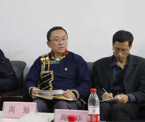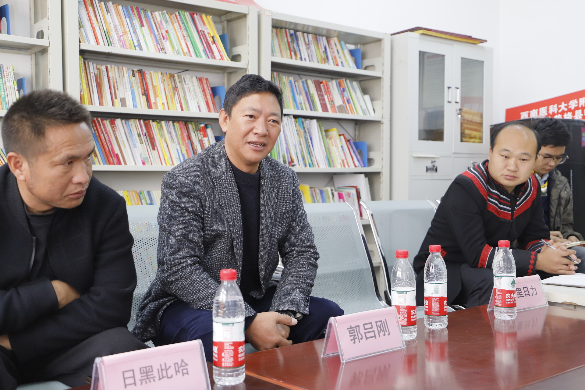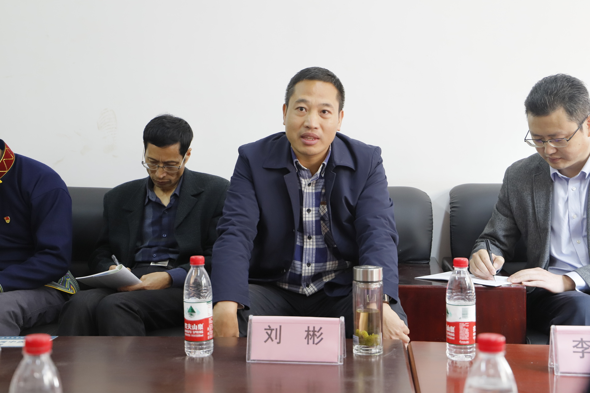 刘彬讲话,他对李志一行的到来表示欢迎,希望与我院深化合作,进一步拓展普格县的中药材产业发展,加强教育、医疗扶贫,把彝区建设得更好。