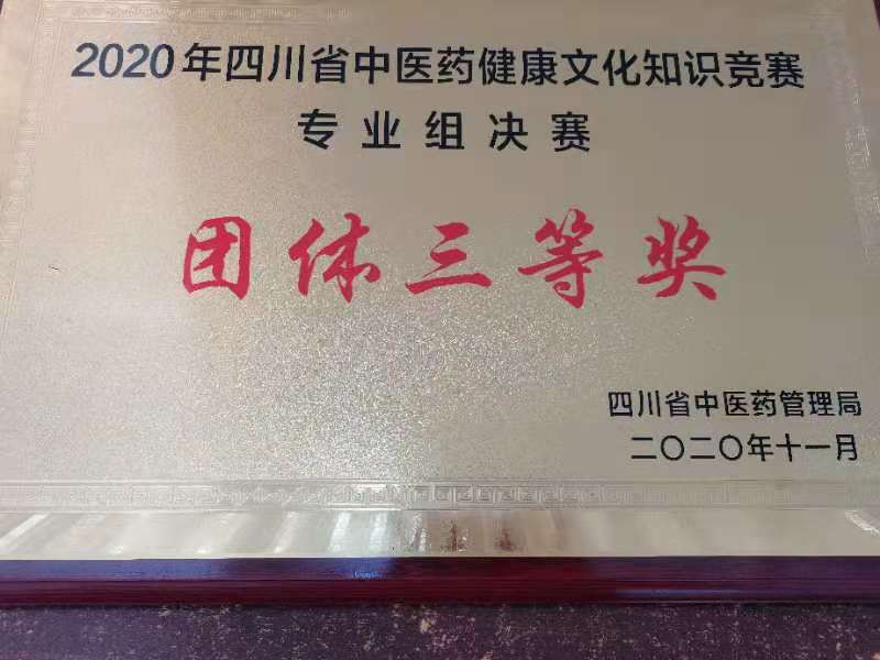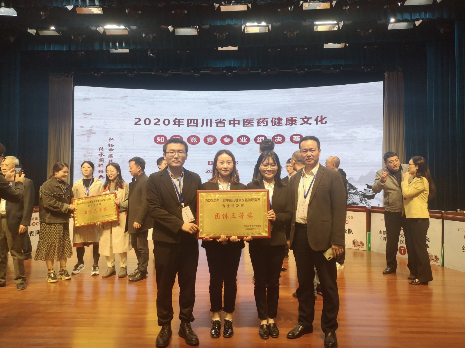 2020年11月13日,四川省中管局主办的第二届四川省中医药健康文化知识竞赛决赛在成都中医药大学温江校区举行。我院党委副书记赵国强带领学生章惠玲、曾岸、王孝杰组成代表队参加比赛,荣获2020年四川省中医药健康文化知识竞赛专业组决赛团体三等奖。