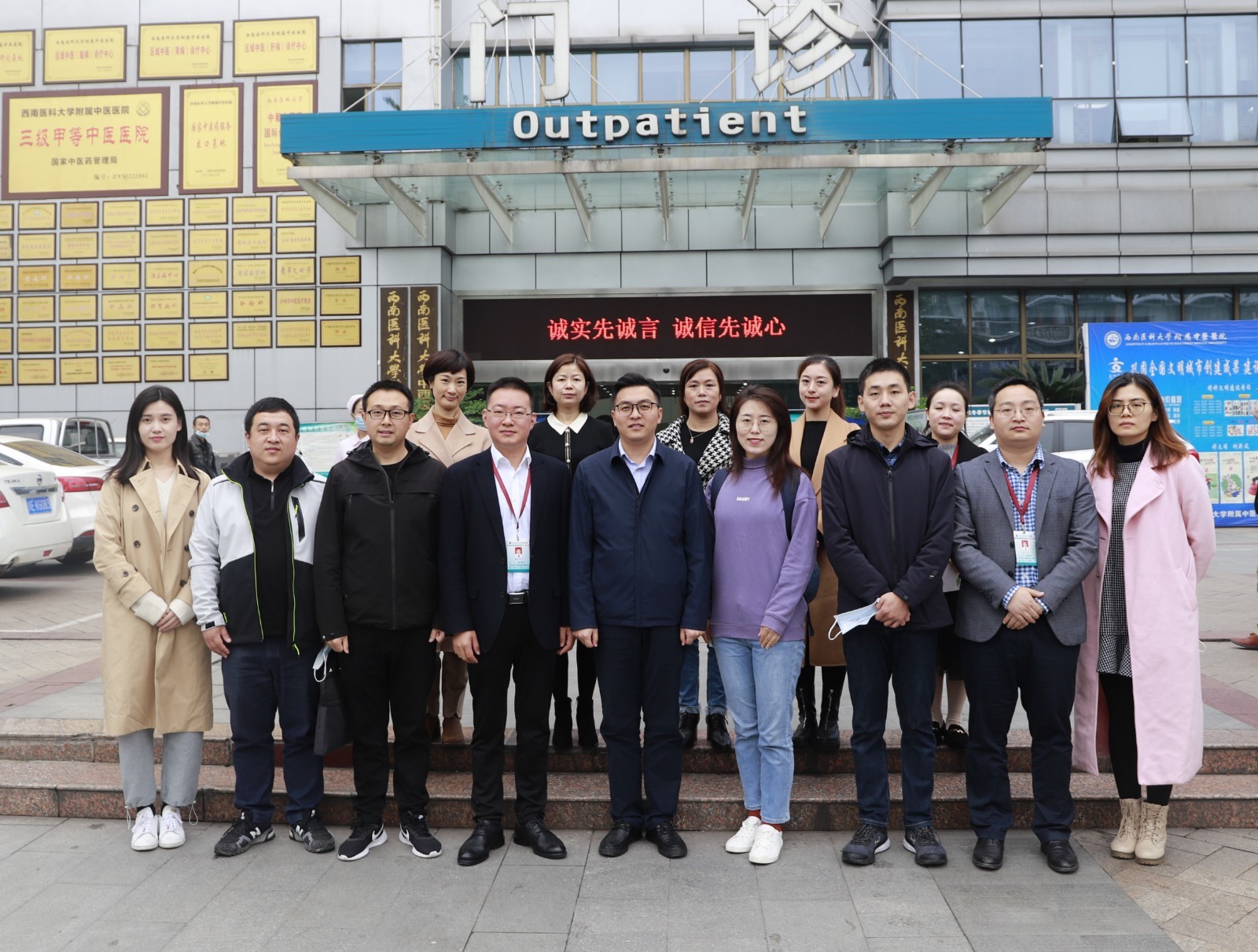 2020年11月5日,国家药监局直属机关团委2020 年度“根在基层”青年干部调研实践团来我院开展调研实践活动。国家药监局老干局组织宣传处四级主任科员刘洋一行,在共青团泸州市委党组成员、副书记朱鹏云,我院院长助理徐厚平及相关职能部门负责人的陪同下参观了医院门诊大厅、名医馆、中医药文化·院史博物馆、健身中心等地。