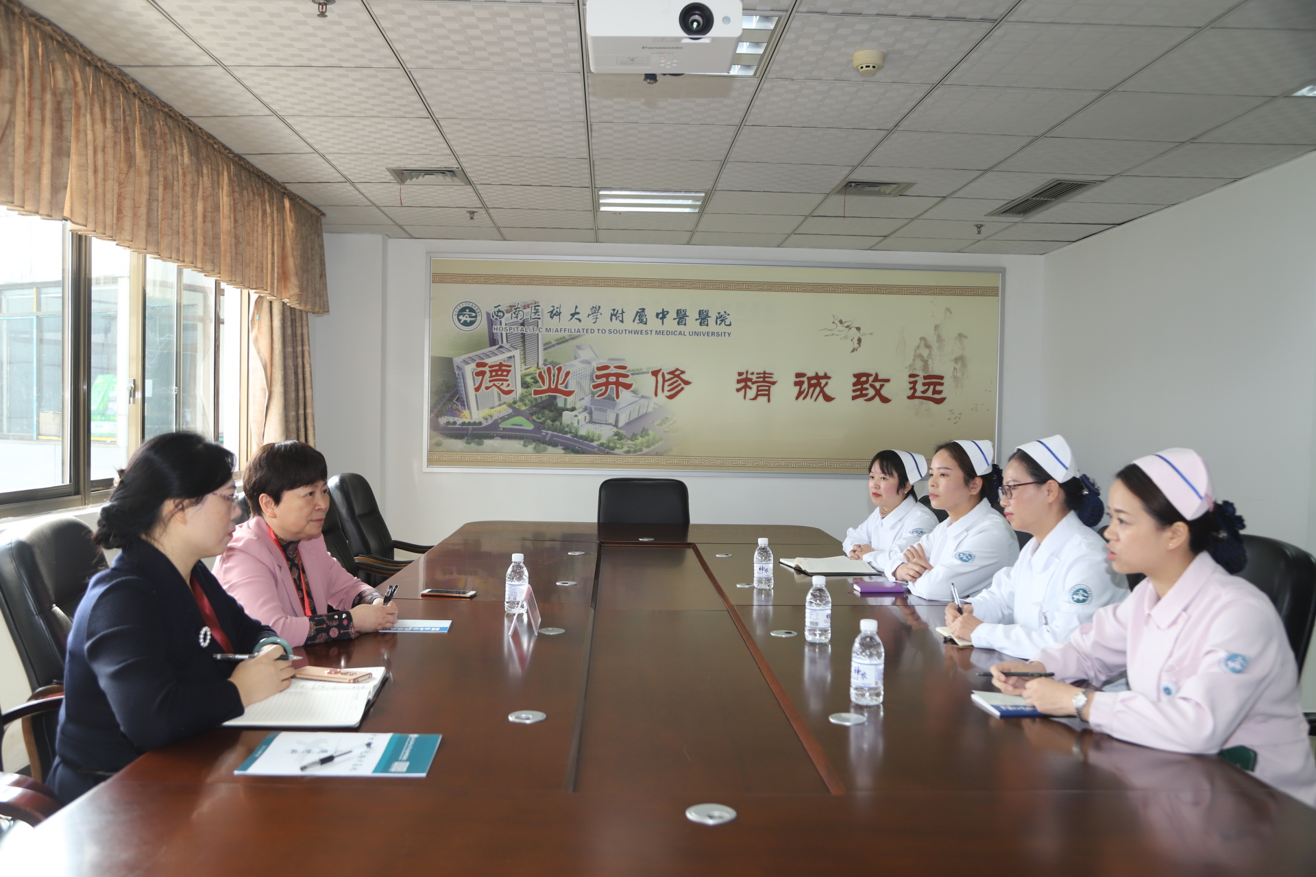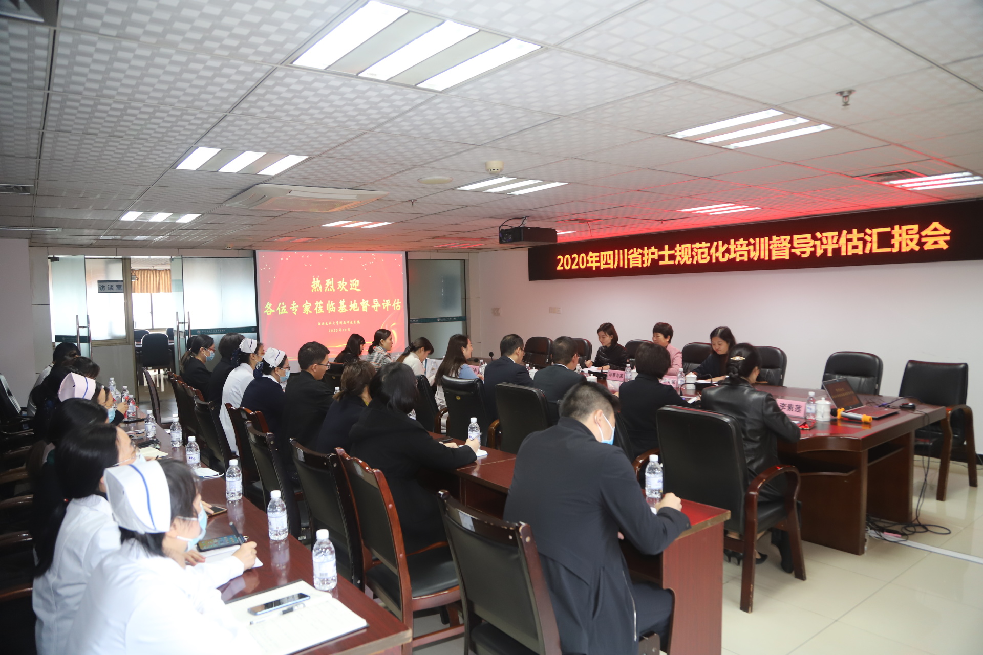 2020年10月29日,我院护士规范化培训基地迎接了2020年四川省护士规范化培训基地督导评估组专家检查。此次四川省护士规范化培训基地专家组由组长川北医学院护理学院副院长陈玉琴教授、广安市人民医院护理部主任李君慧、川北医学院护理部干事王丹组成。专家组一行,我院院长刘建、党委副书记兼纪委书记徐茜等领导,相关职能部门负责人及临床科室护理人员等参加了会议。会议由徐茜主持。