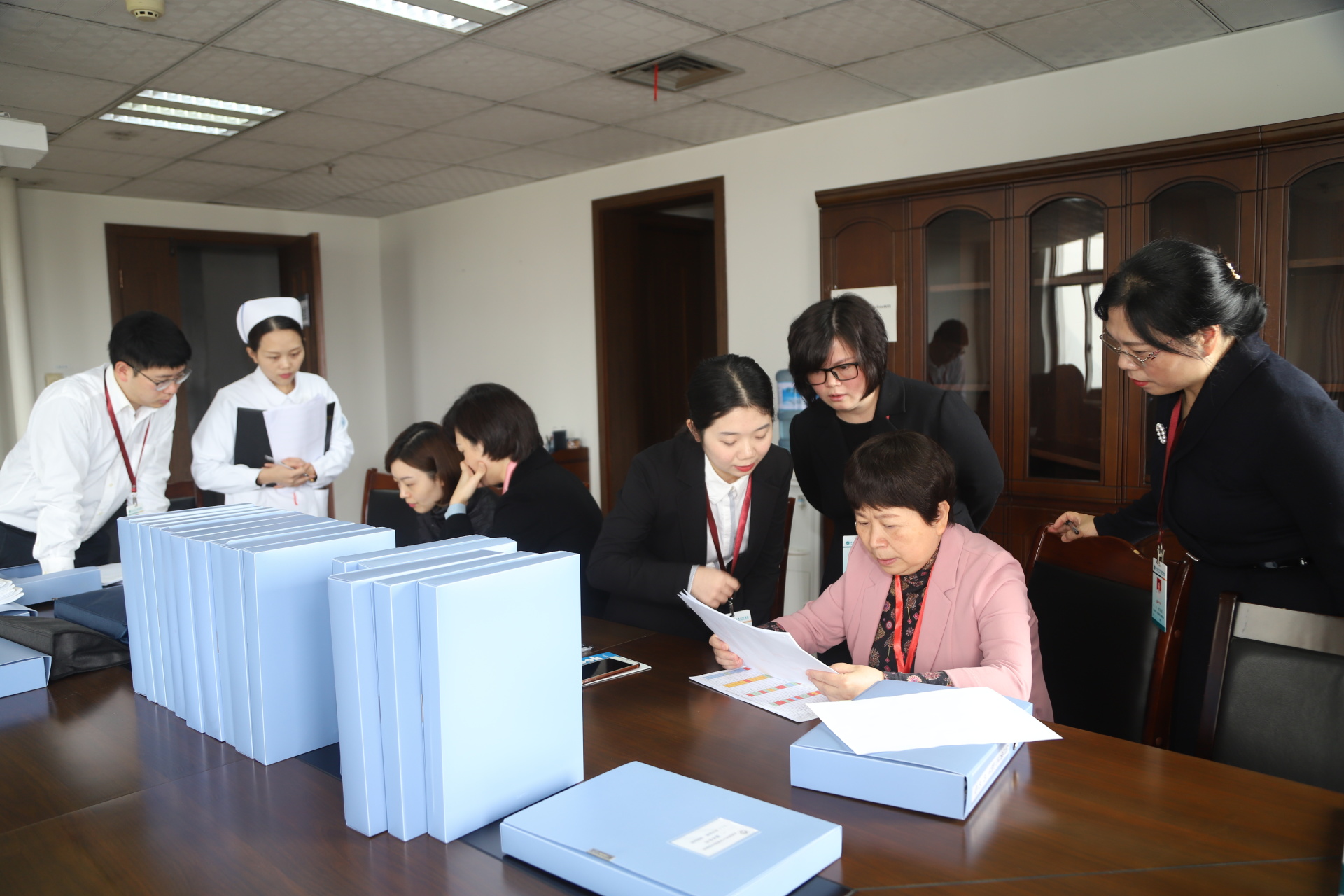 随后,评估督导组专家们严格按照检查标准通过查阅资料、实地查看、现场访谈等形式对我院护士规范化培训基地工作开展情况进行了检查。