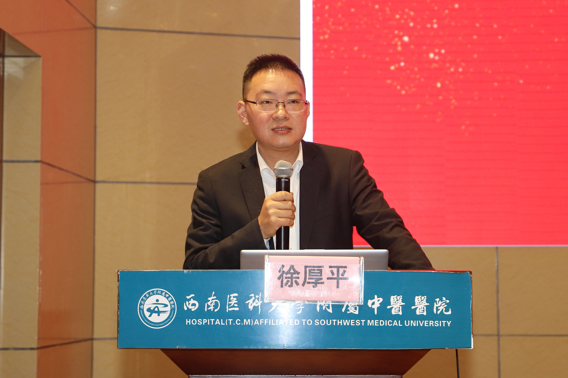 徐厚平致辞,他介绍了我院基本情况和国家临床研究基地建设情况后表示,希望通过此次会议,进一步推动国家中医临床研究基地重点病种研究进展,提升中医药的防病治病能力和自主创新能力。