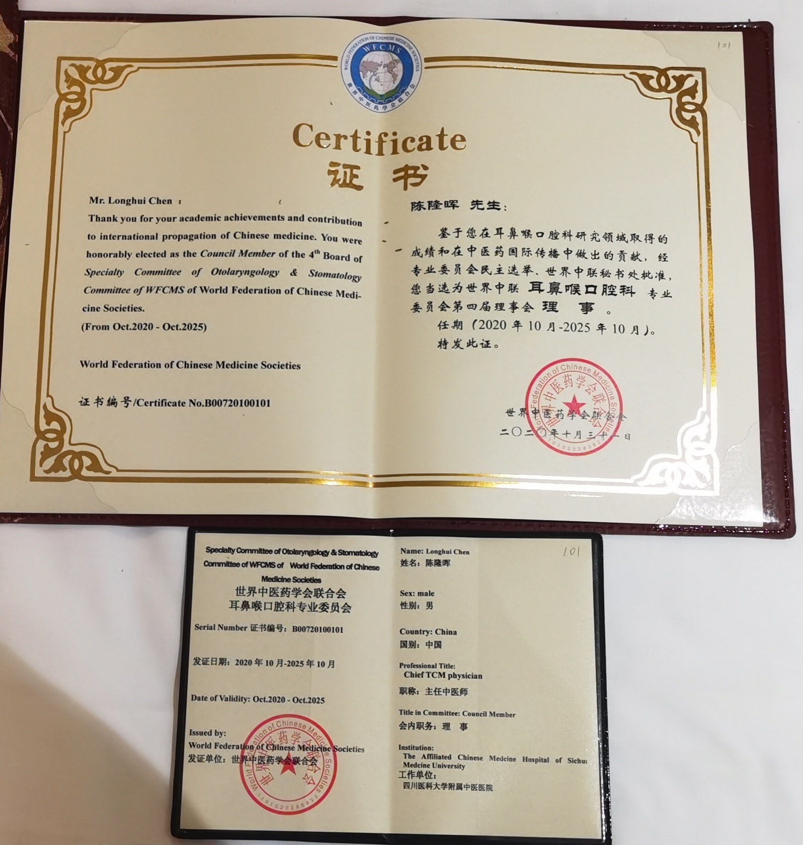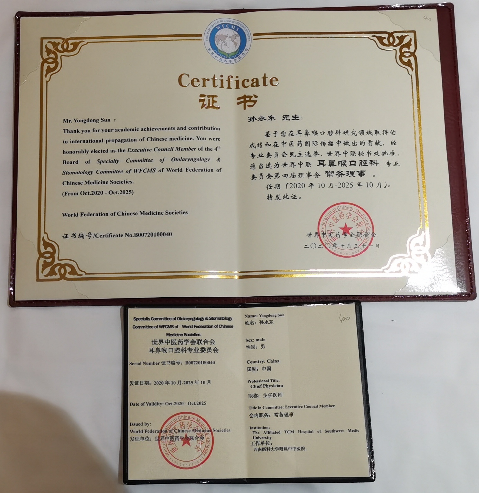 2020年10月31日-11月1日,世界中医药联合会联合会耳鼻喉口腔科专业委员会换届及第十二届学术年会暨耳鸣中医专题学术研讨会在河北省石家庄市召开,我院耳鼻咽喉科主任孙永东教授当选为常务理事,陈隆晖教授当选为理事。