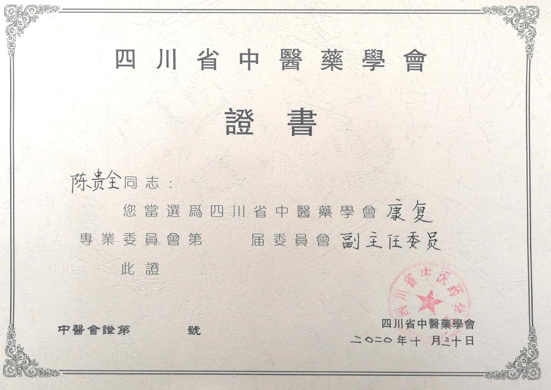 2020年10月31日,四川省中医药学会康复委员会成立大会暨第一届学术年会召开。我院针灸·康复科主任陈贵全教授当选为副主任委员兼传统神经学组组长,李海峰主治医师当选为委员,李浪、吕顺丽医师当选为青年委员。会上,陈贵全应邀作了《面肌痉挛针刀治疗思路》专题讲座。