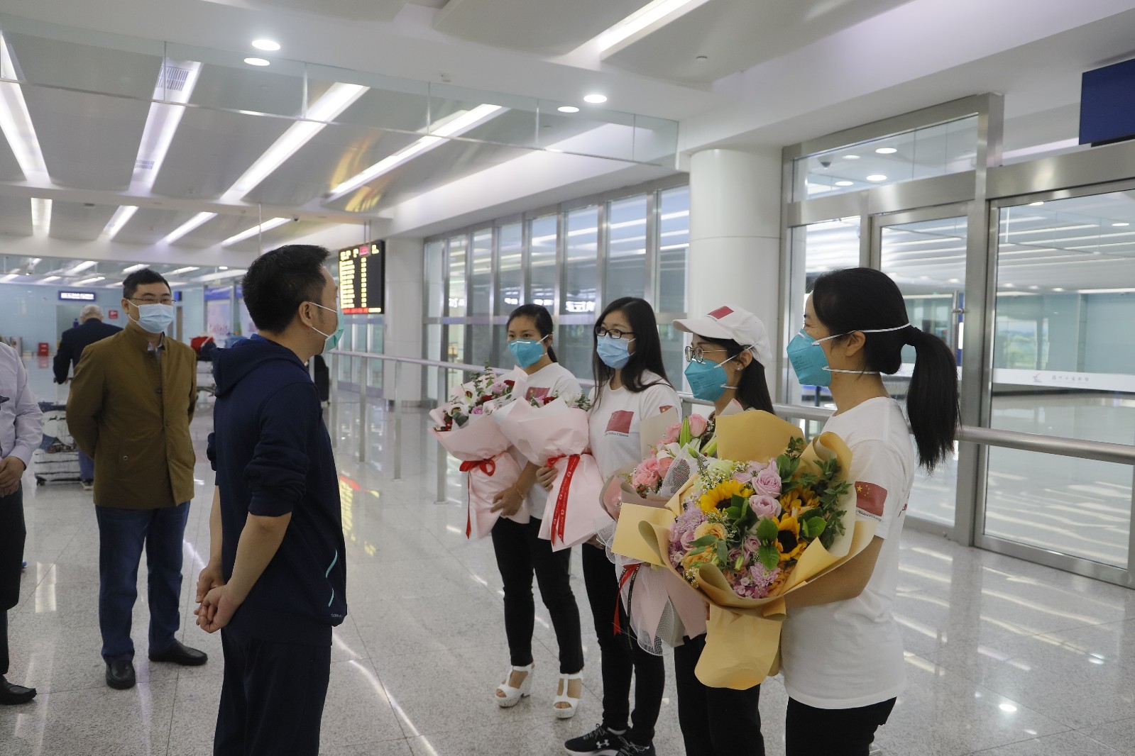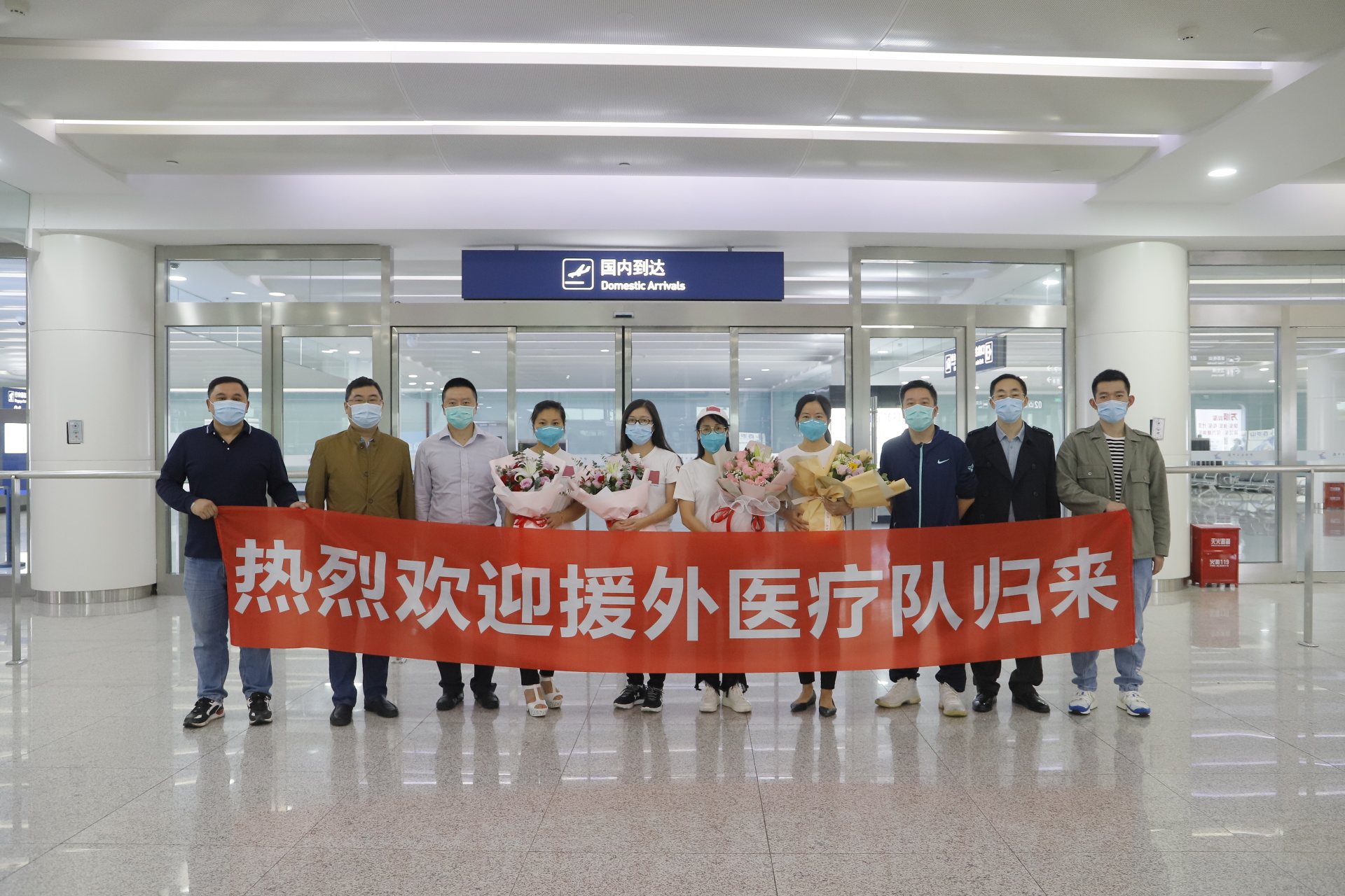 2020年10月5日,四川省第15批(复交后第4批)援圣普医疗队在西安完成隔离后顺利返航,四川省卫生健康委员会国际合作处处长彭博文率队到泸州云龙机场接机,我院副院长张建堂参加了接机仪式。