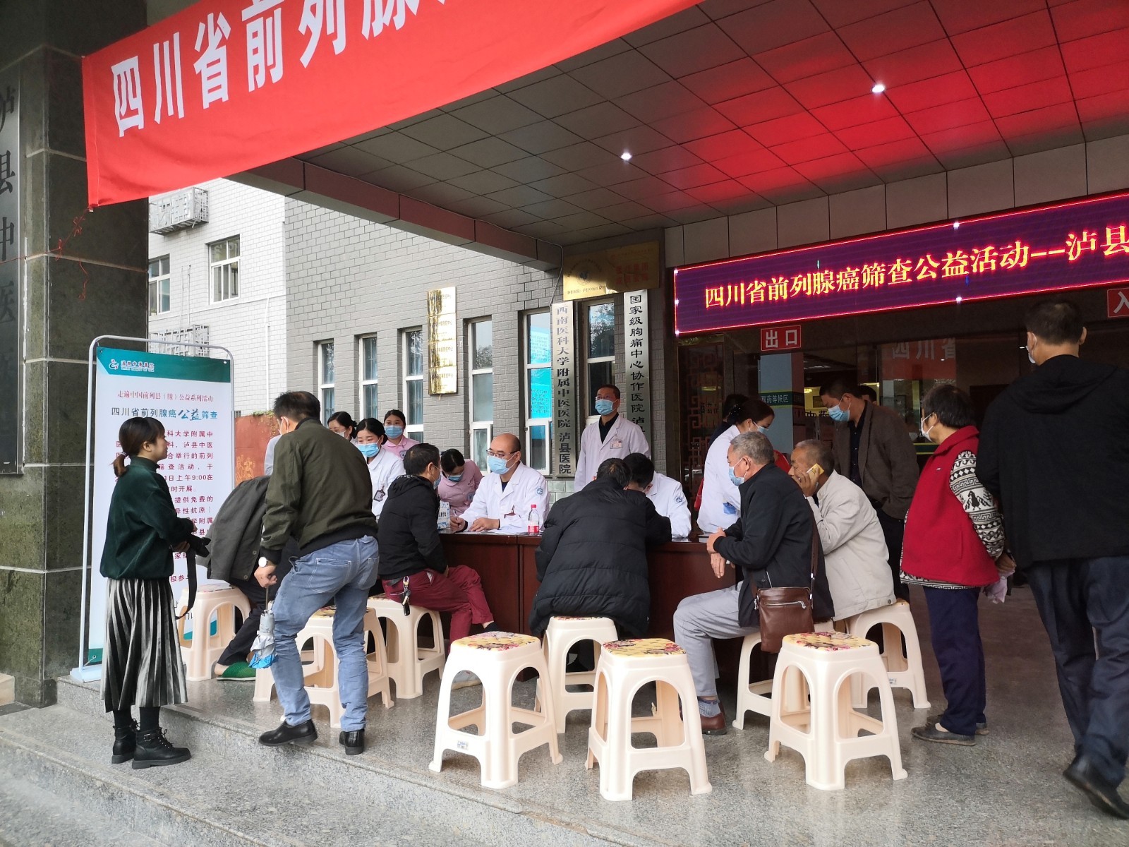 活动现场,我院专家联合四川省老年医学学会泌尿外科专委会、泸州市中西医结合泌尿外科及男科专委会和泸县中医医院的专家们为当地的群众免费进行前列腺癌早期筛查、发放宣传资料。我院粟宏伟教授、罗松涛教授分别作了《前列腺癌的治疗》《慢性前列腺炎的中西医结合治疗》讲座。