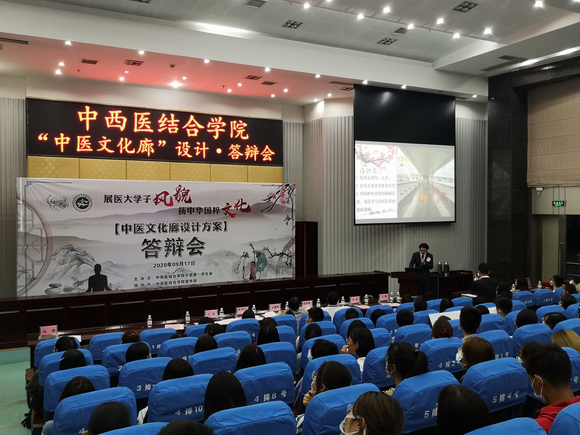 2020年9月17日,中西医结合学院举办“展医大学子风貌,扬中华国粹文化”——中医文化廊设计方案答辩会。我院党委副书记赵国强,院系相关科室负责人参加了会议。