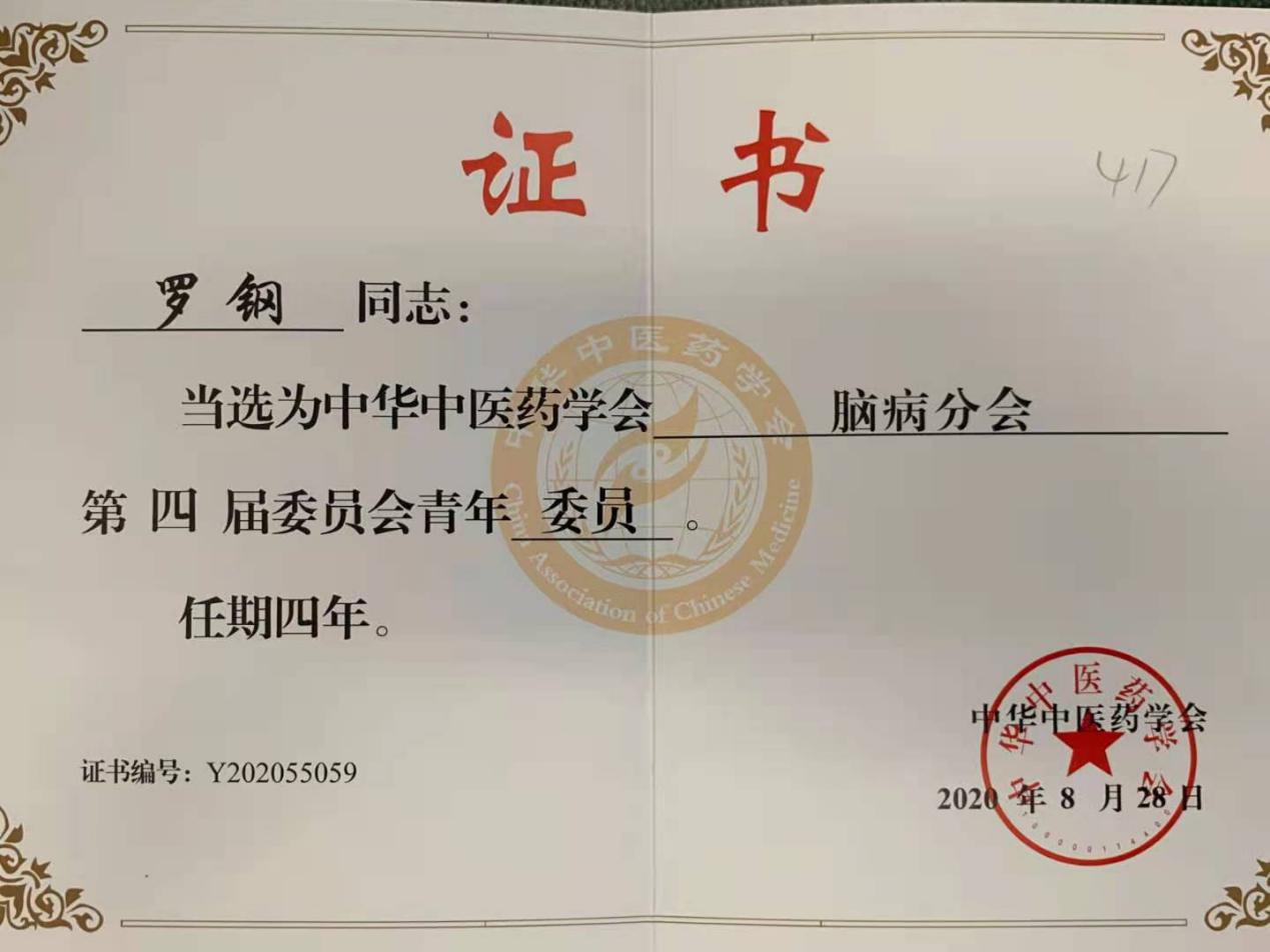 8月28-30日,由中华中医药学会主办、脑病分会承办的中华中医药学会脑病分会2020学术年会暨第四届换届大会在广州举行,我院大内科主任、心脑病科主任兼神经内科主任白雪教授当选为委员,心脑病科副主任兼心血管内科+心脑血管介入室副主任罗钢副教授当选为青年委员。