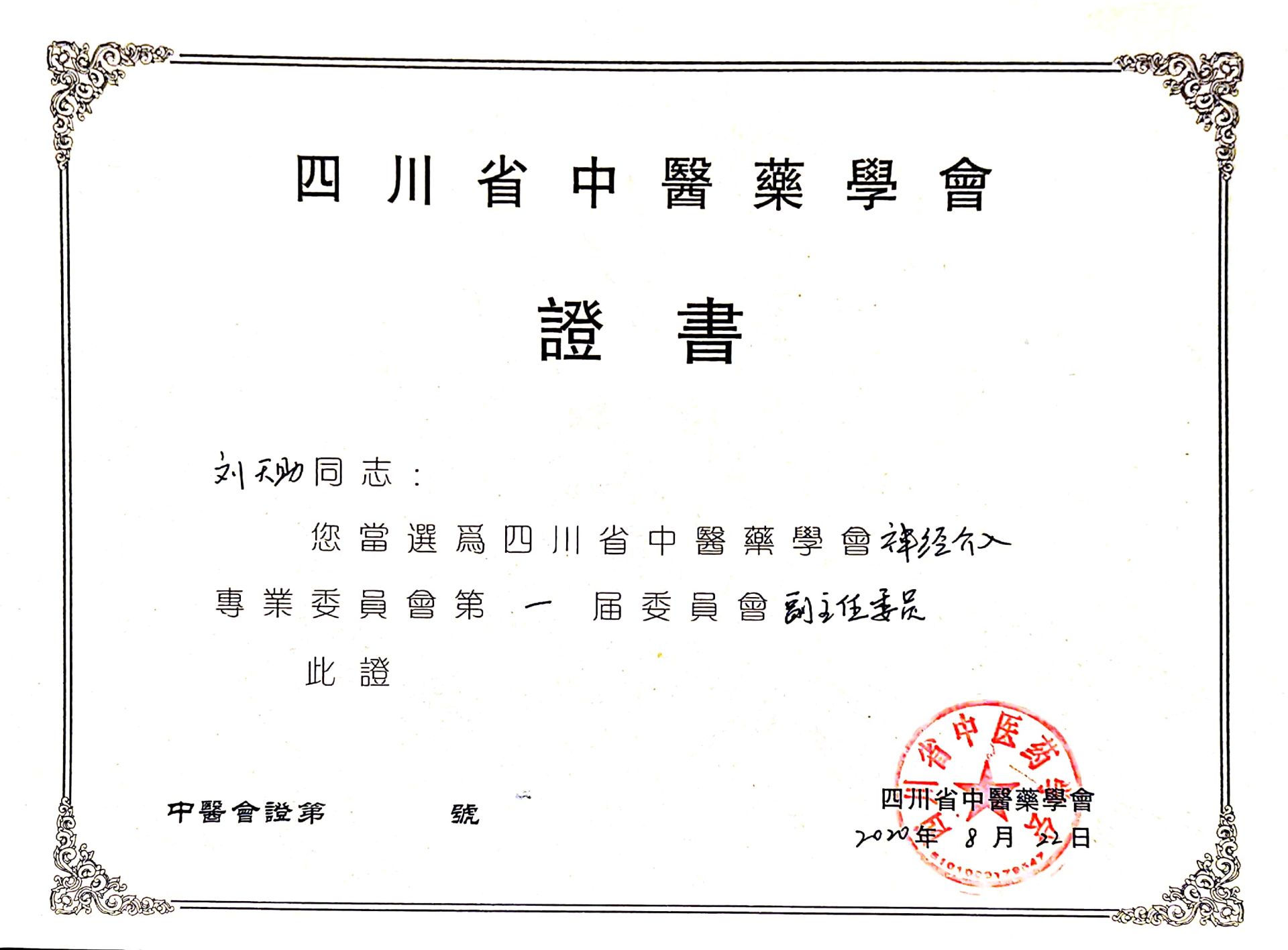 近日,我院心脑病科副主任兼神经内科副主任刘天助副教授当选为四川省中医药学会神经介入专业委员会第一届委员会副主任委员,大内科主任助理吴英副教授,邓世宇医师当选为委员。