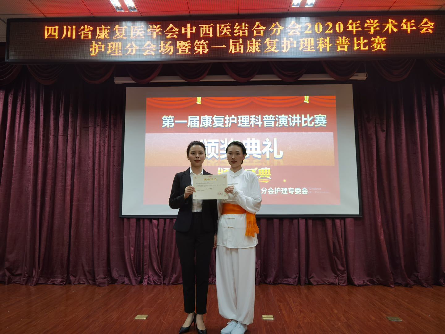 会上,我院护理部主任李素莲、针灸·康复科主任陈贵全分别作了《康复护理门诊的实践与探索》《针刀治疗选穴精要》专题讲座,针灸·康复科马婷、先棋的《神马课堂》获得第一届康复护理科普比赛三等奖。