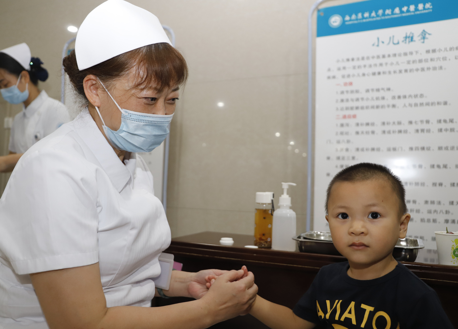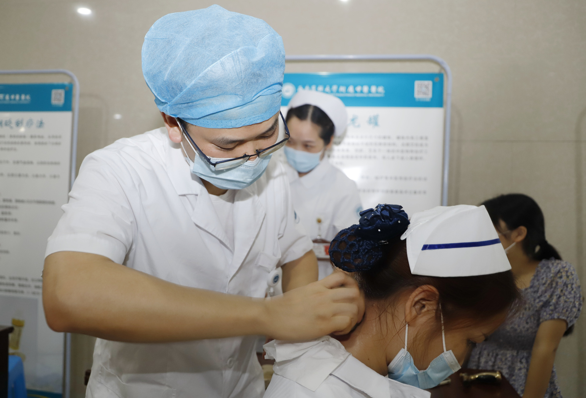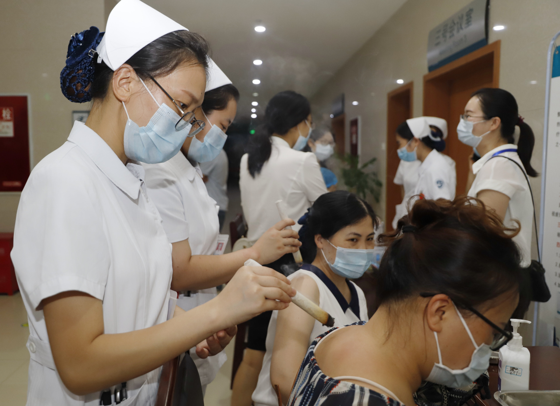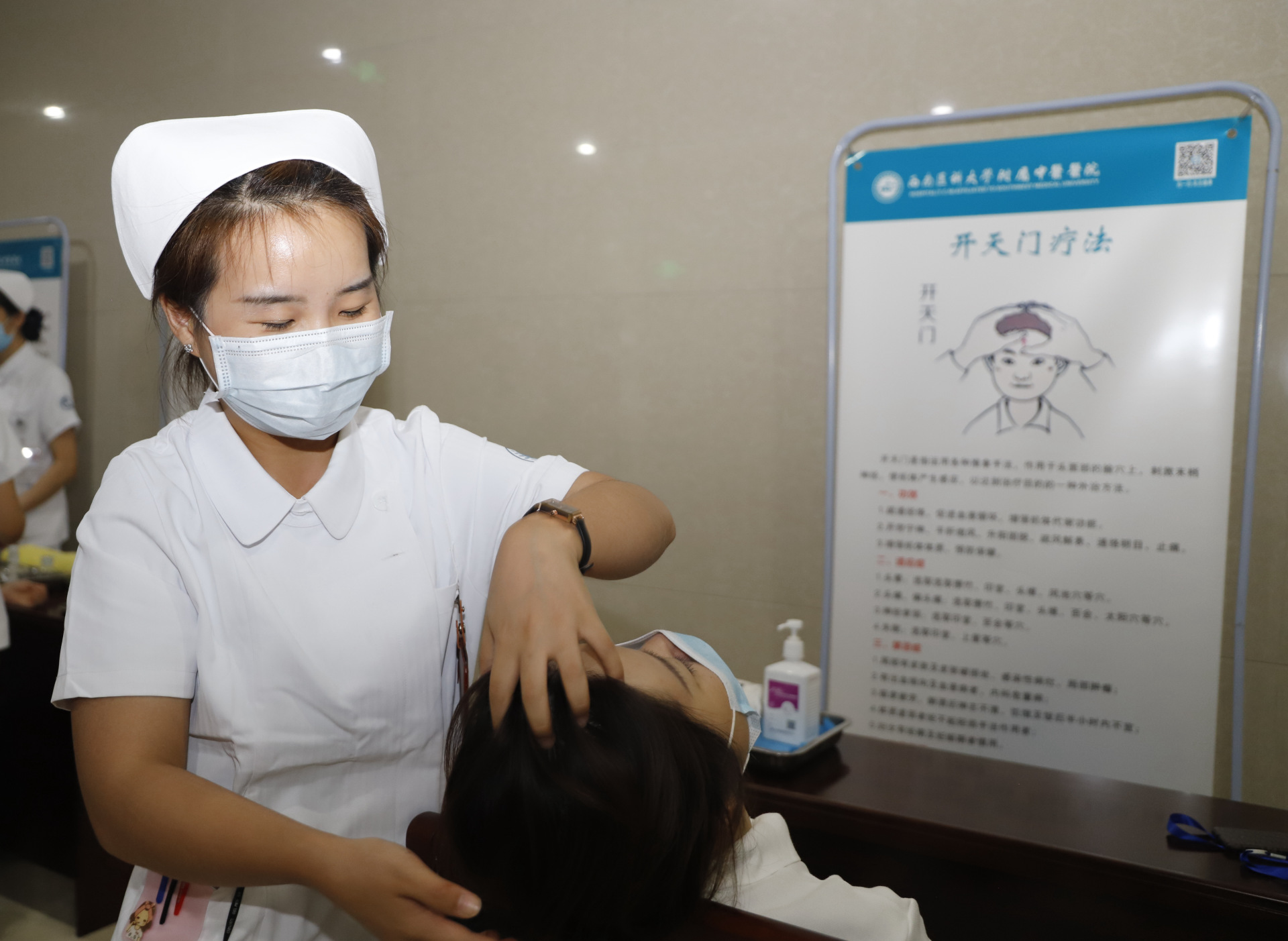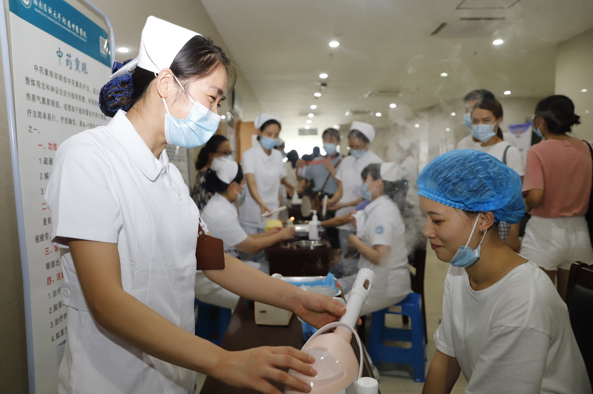 会议期间,医院还开展了中医药创意作品展示和火龙罐、小儿推拿、中药热熨、中药熏眼等中医药特色技术体验活动。