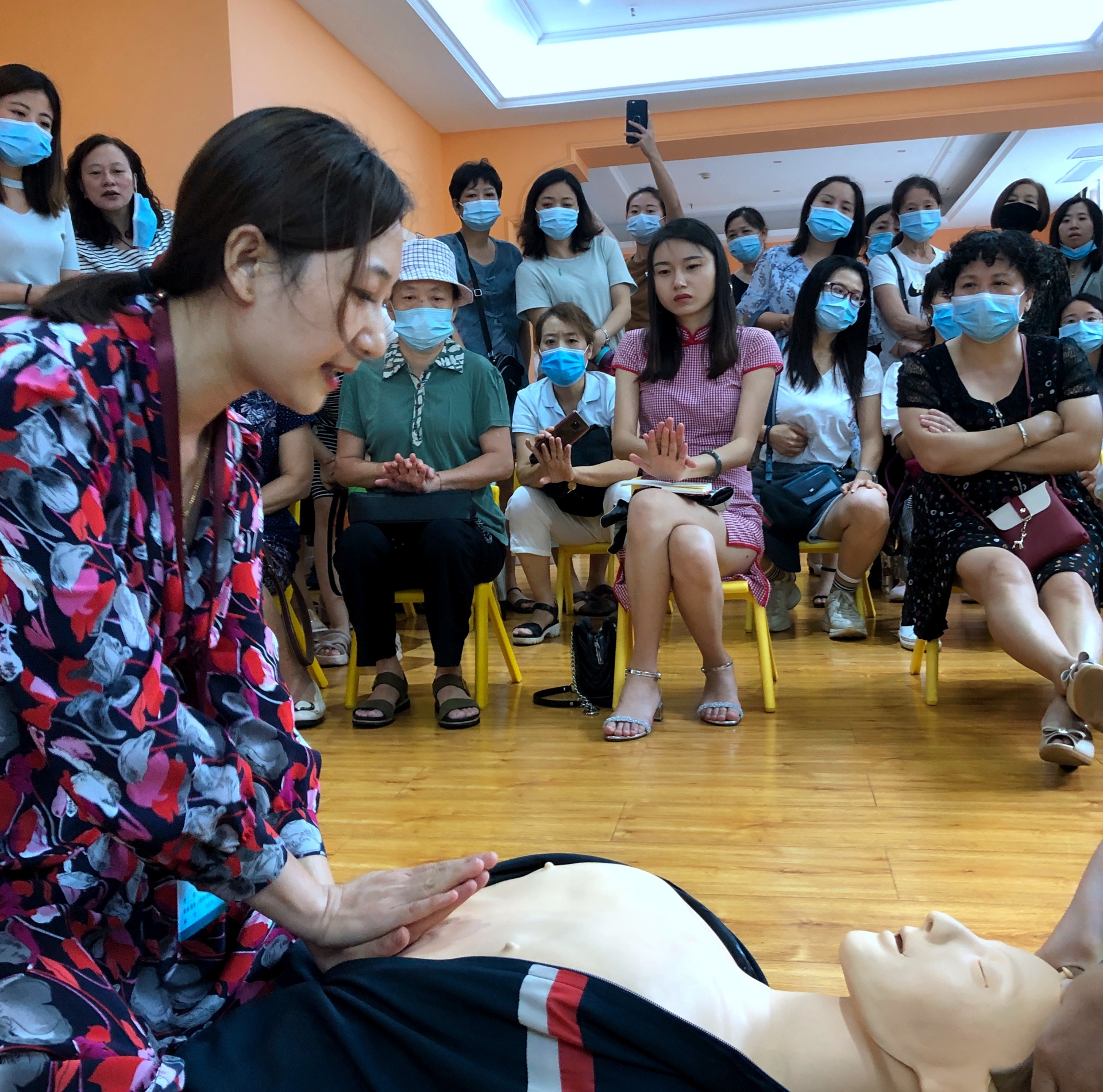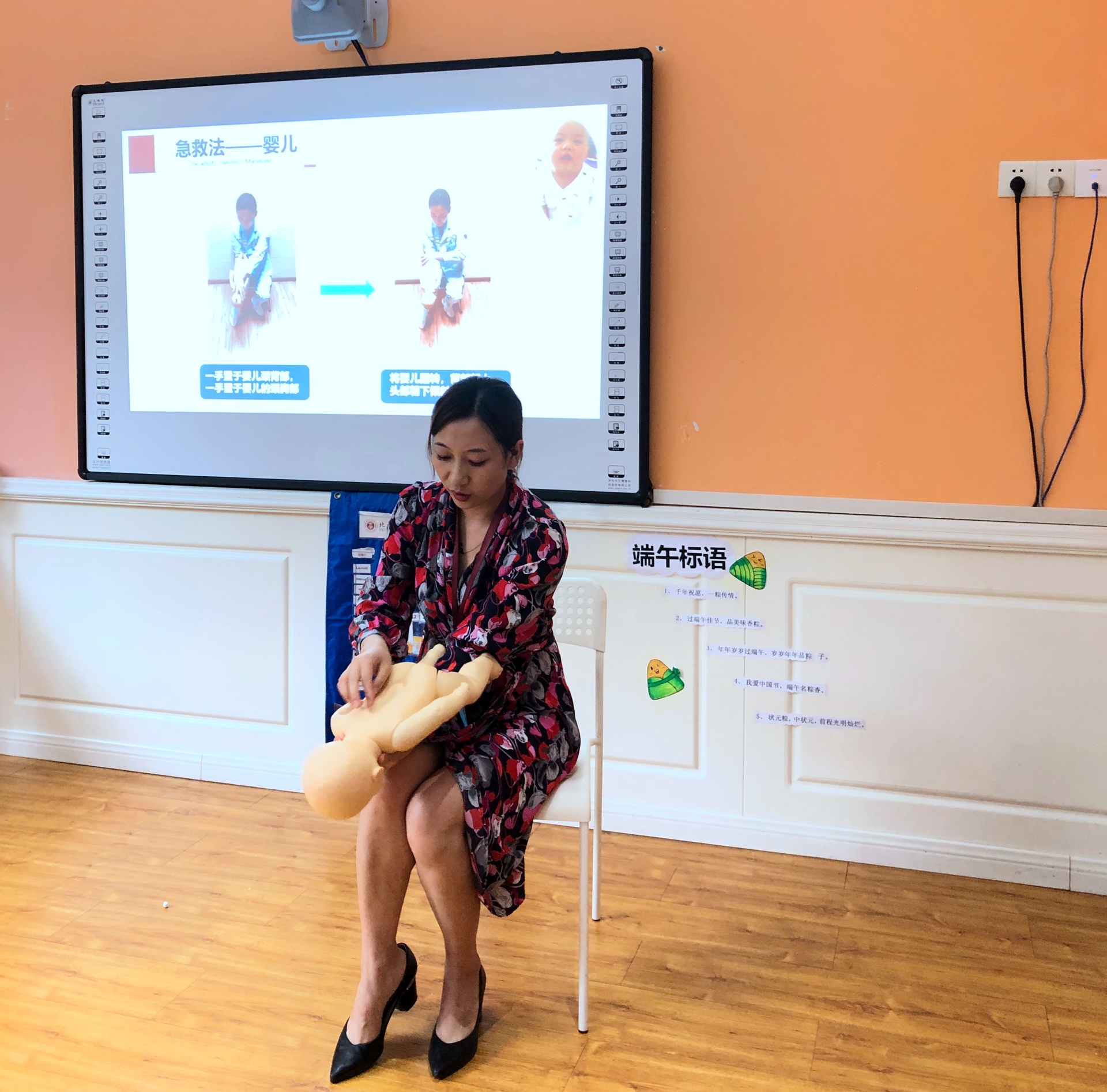讲座现场,儿科主任助理杜渊副主任中医师、水井沟急诊科副护士长邓钰主管护师先后作了《川南地区儿童常见疾病的防治》《海姆立克急救法》专题讲座并现场教学答疑,受到了全体家长及老师的欢迎。