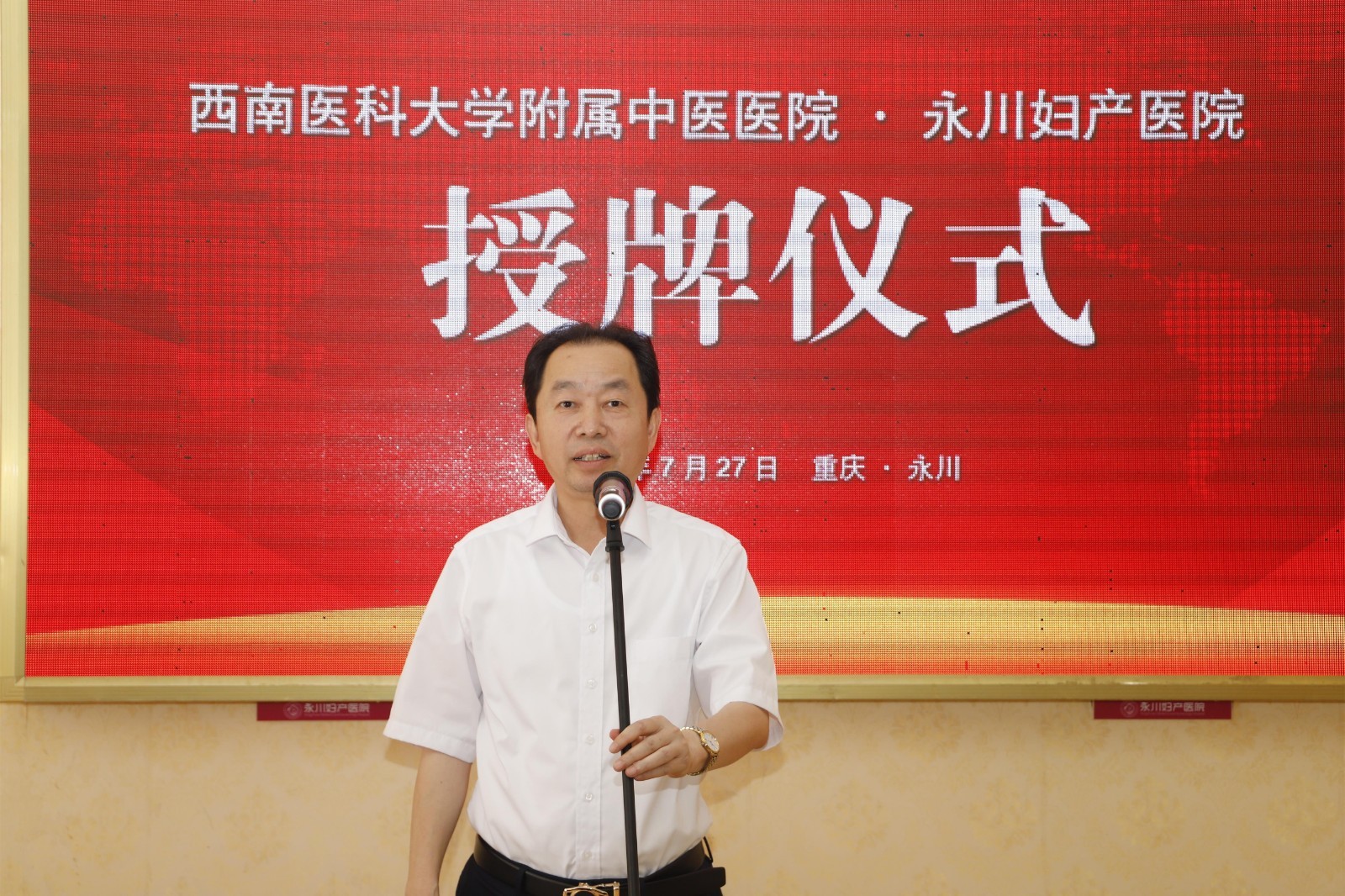 邓儒方致辞,她介绍了永川妇产医院的基本情况后,表示将以此次授牌为契机,在西南医科大学附属中医医院的指导下,强化内部管理,加强内涵建设,为永川地区的医疗事业作出更大的贡献,同时希望通过此次医联体合作,为渝西地区人民群众提供更加优质、快捷、便利的医疗服务。