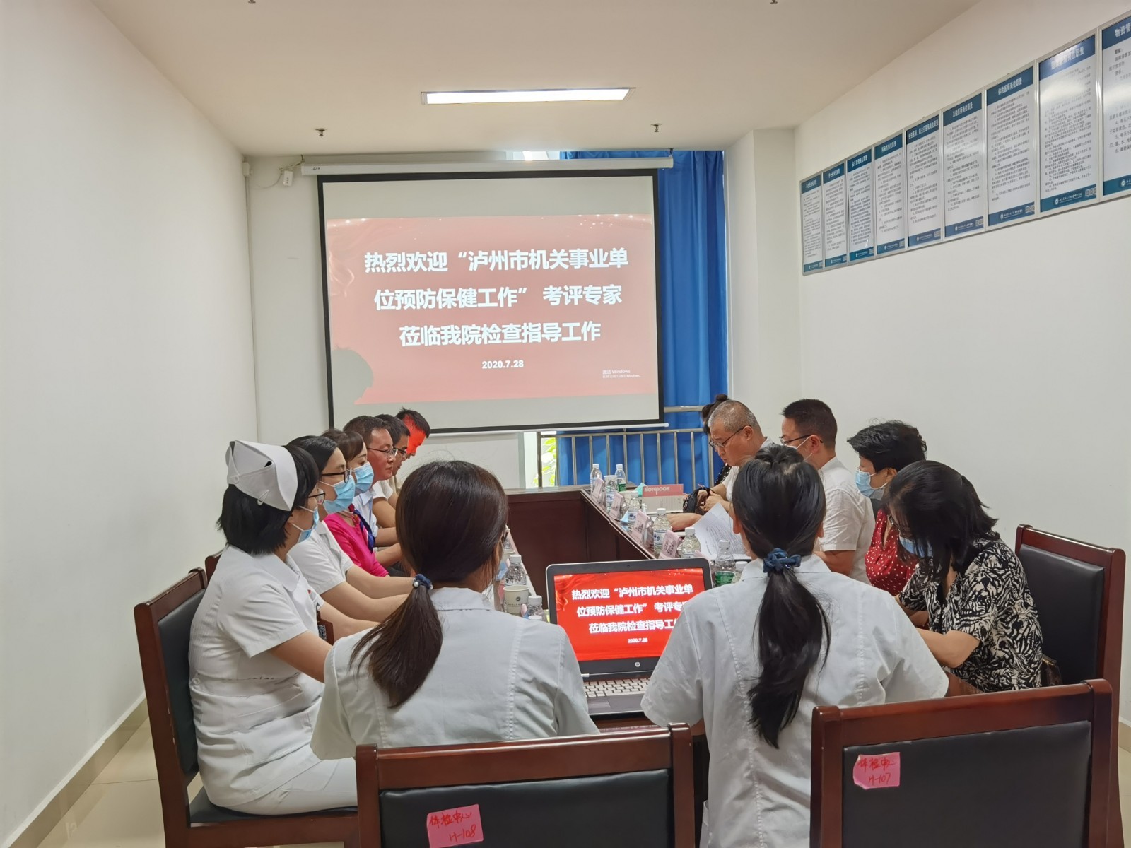 2020年7月28日,泸州市卫健委王建伟副主任带队到我院检查2019年度预防保健工作开展情况。我院院长助理徐厚平、健康管理中心主任周仲芳及部分人员参会。会议由泸州市卫健委医政医管科徐远志科长主持。