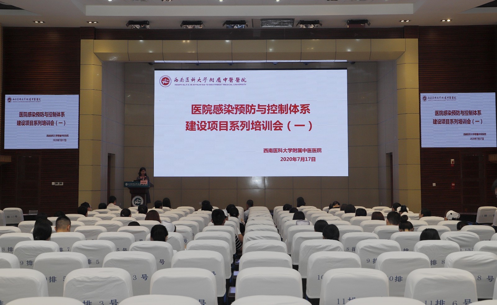 2020年7月17日,我院举行医院感染预防与控制体系建设培训会,副院长李志、相关授课专家、医院全体感控督查员及合江县中医医院感控专兼职人员参加了会议。会议由感染管理办公室主任金宗英主持。