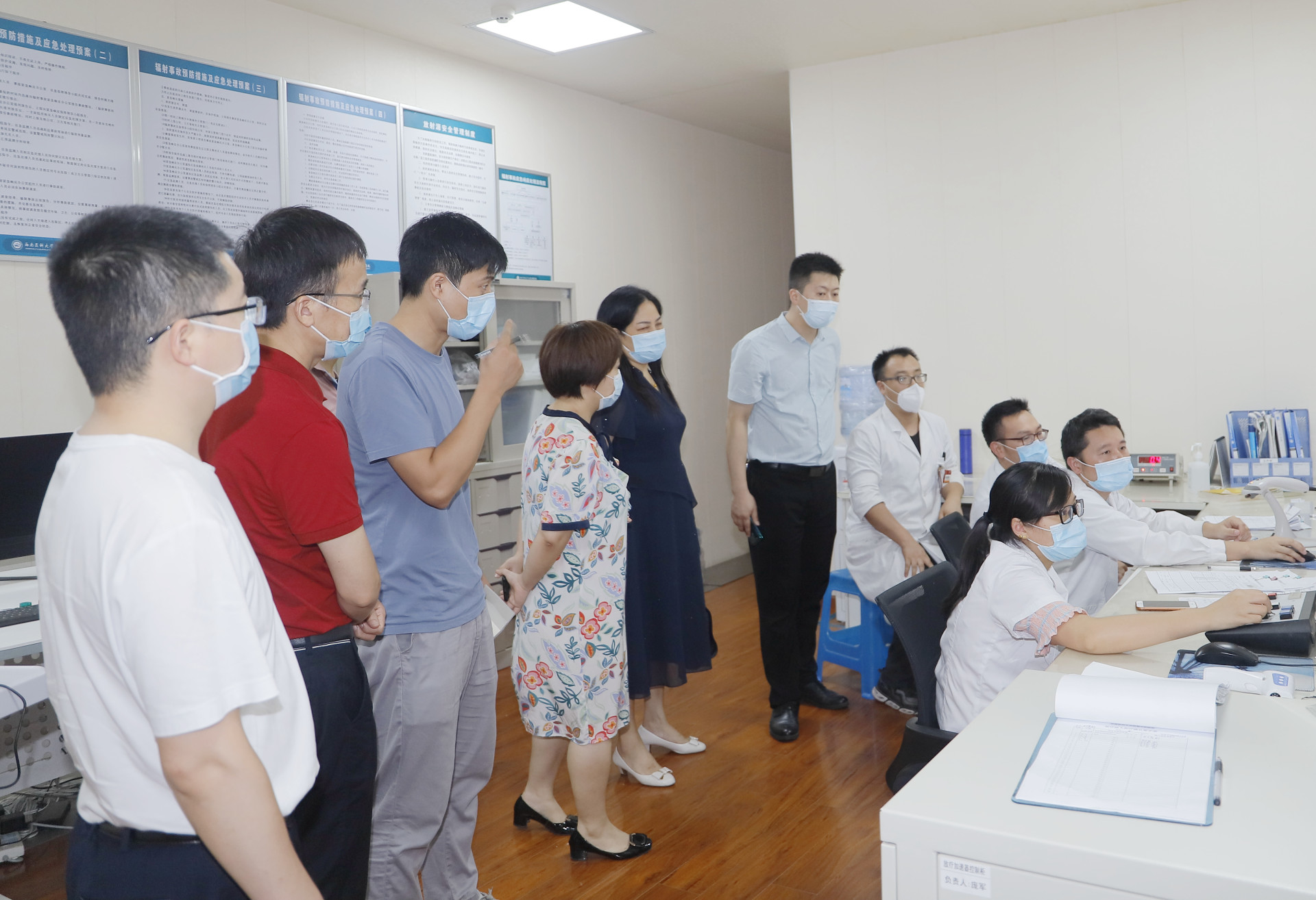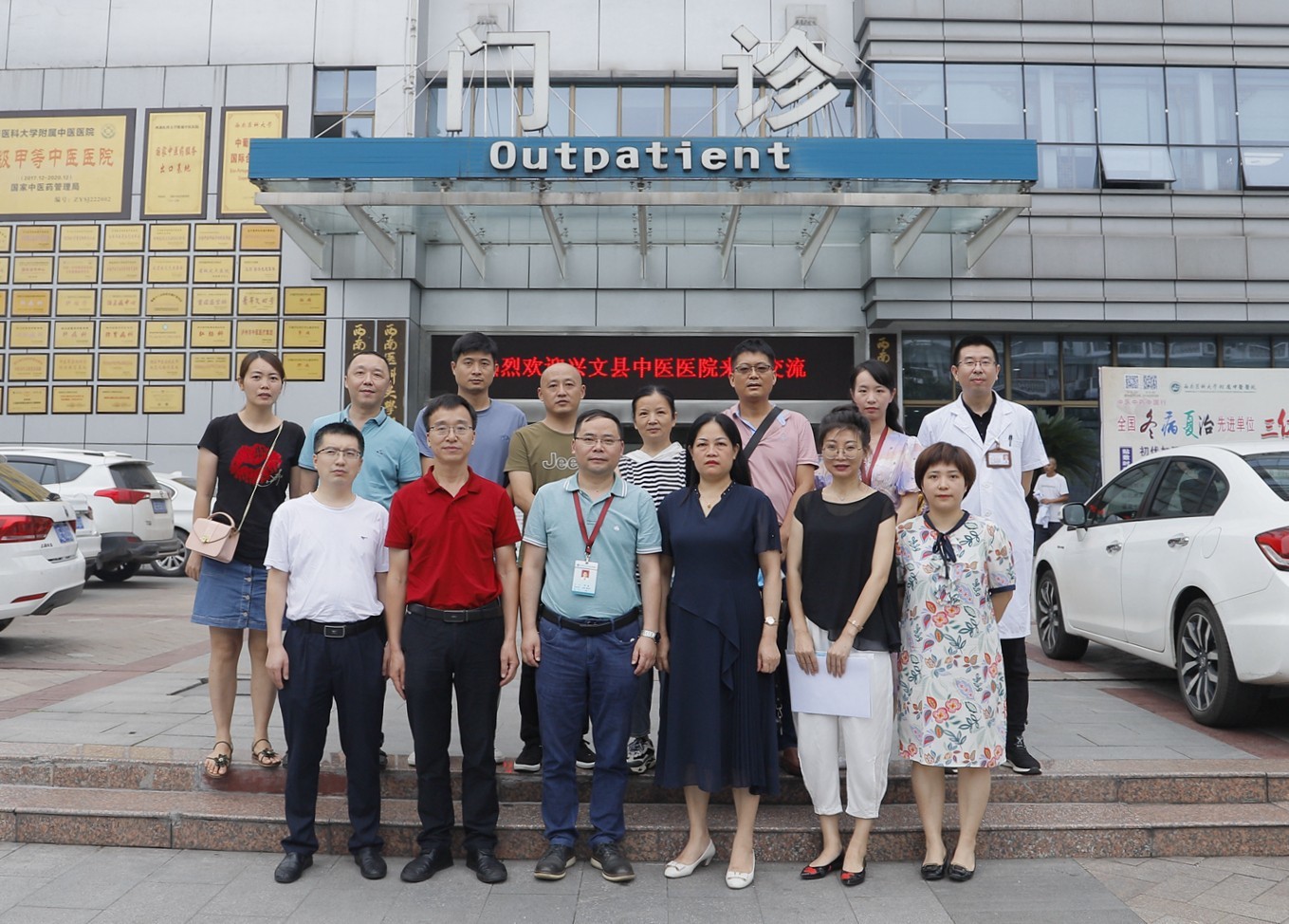 2020年7月10日,兴文县中医医院院长赵容一行来院交流,来宾们在医院副院长刘建及相关科室负责人等陪同下参观了我院门诊大厅、消毒供应中心、放射影像科、头部伽玛刀中心等地。